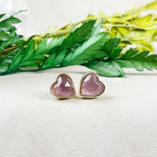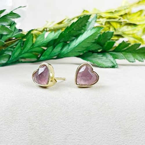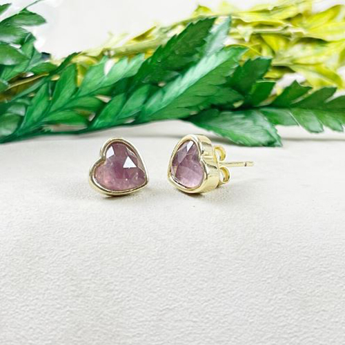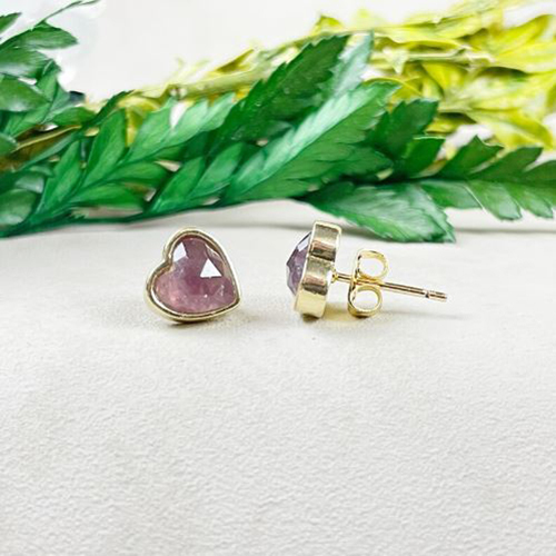 एमेथिस्ट जेमस्टोन 9 मिमी हार्ट स्टर्लिंग सिल्वर गोल्ड वर्मील बेज़ल स्टड