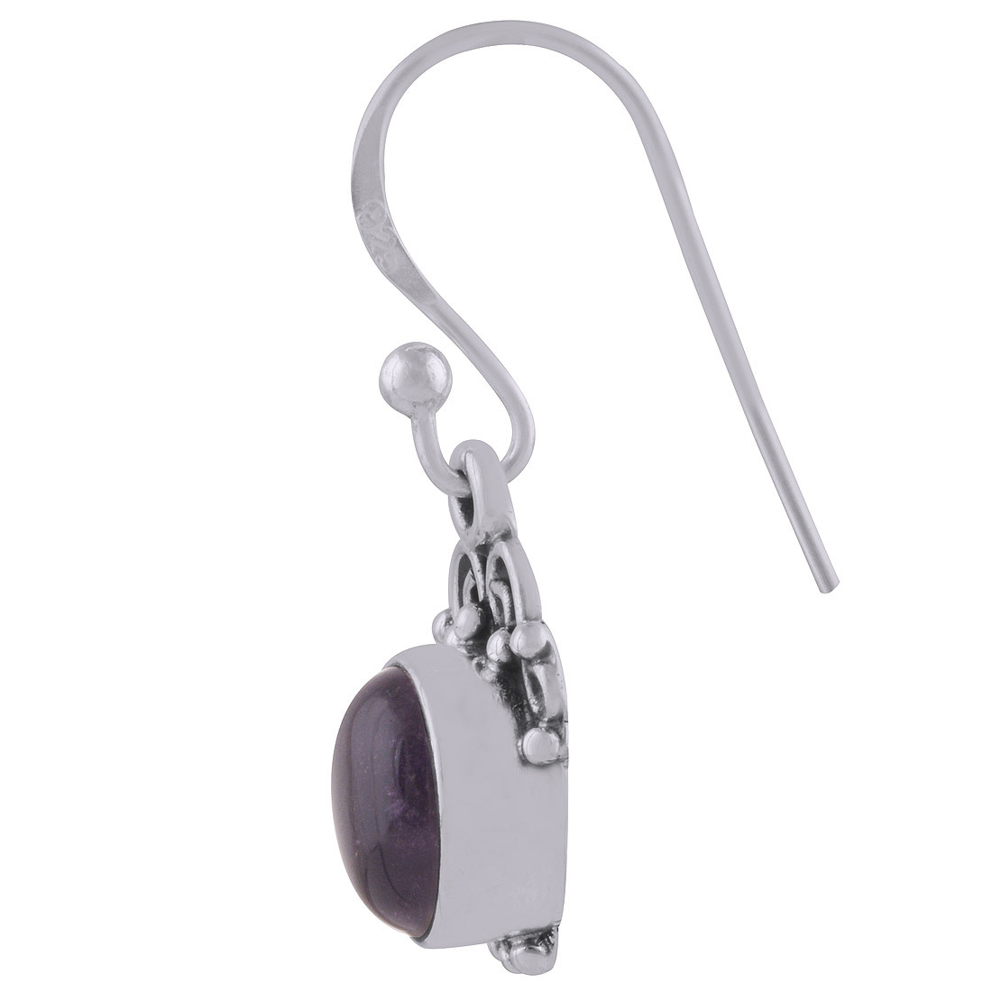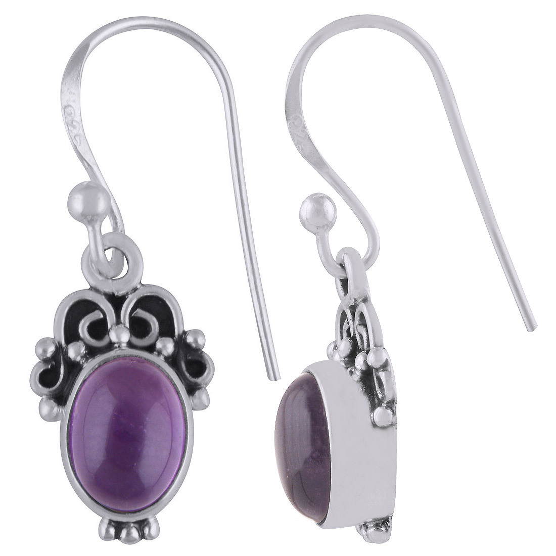 Explore in english - Amethyst Natural Gemstone 925 Sterling Solid Silver Oval Cabochon Handmade Earrings