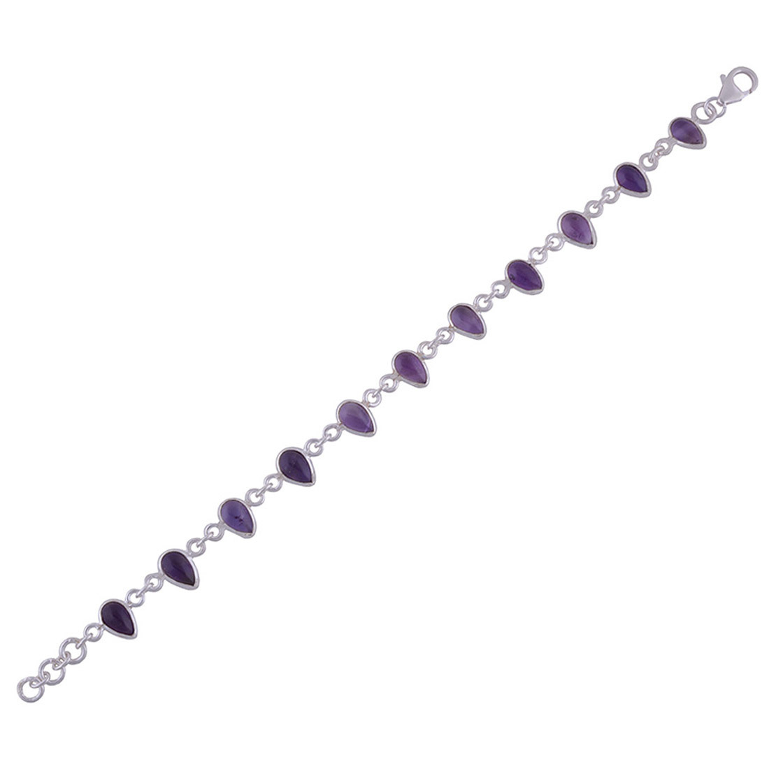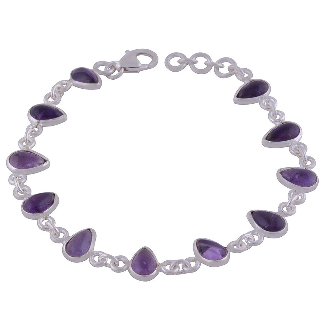 Explore in english - Amethyst Natural Gemstone 925 Sterling Solid Silver Pear Cabochon Handmade Bracelet