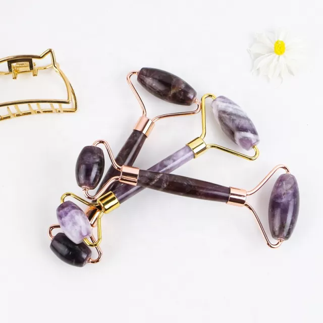 गुलाबी गुलाब क्वार्ट्ज चेहरा मालिश रोलर