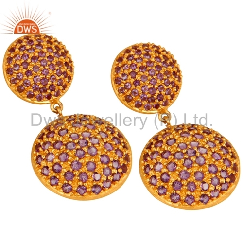 Explore in english - Amethyst Silver Gold Plated Earrings