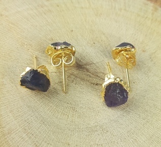Explore in english - Amethyst Stone Rough Stud Earrings - February Birthstone Earring
