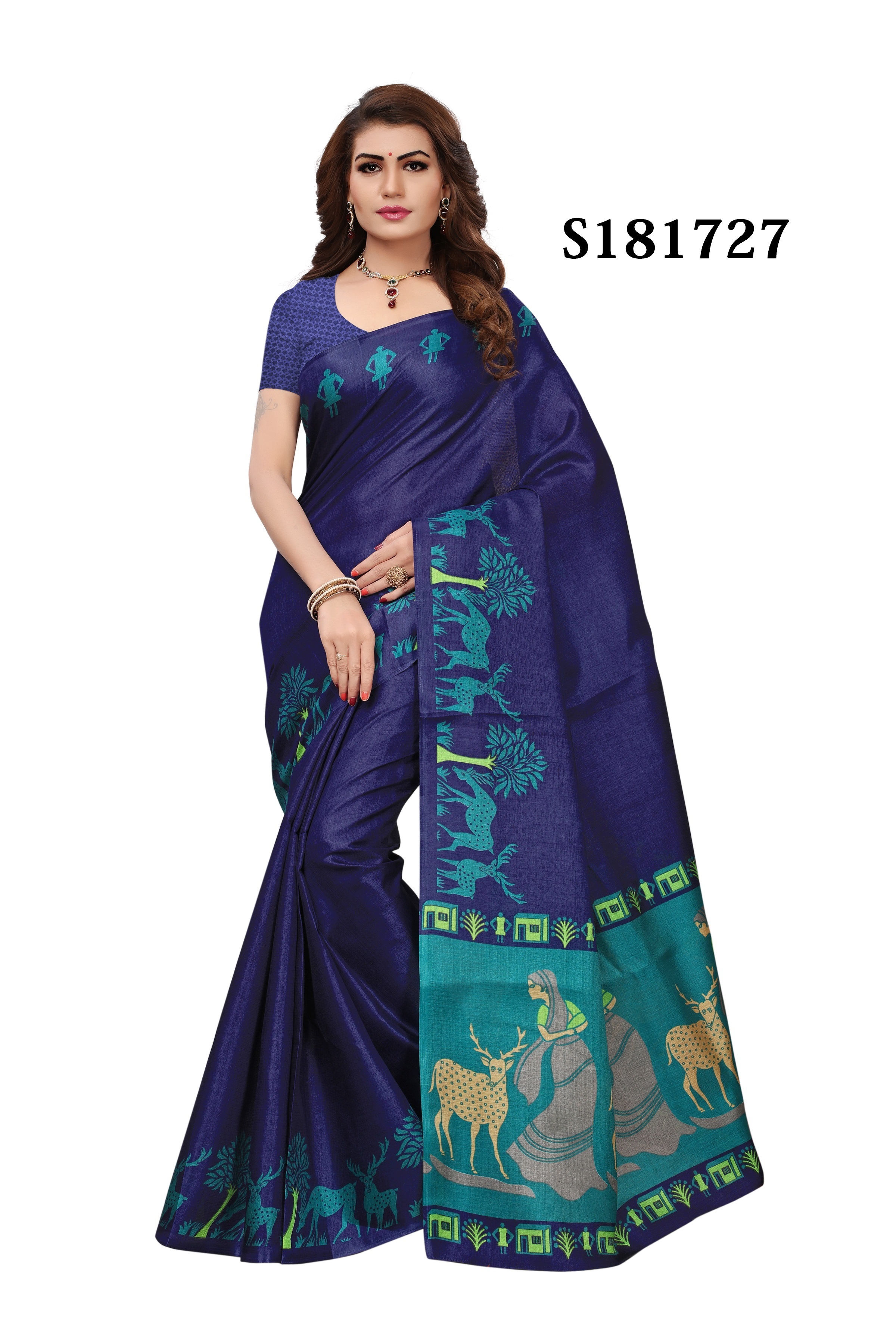 मल्टी कलर एनिमल प्रिंटेड खादी सिल्क साड़ी