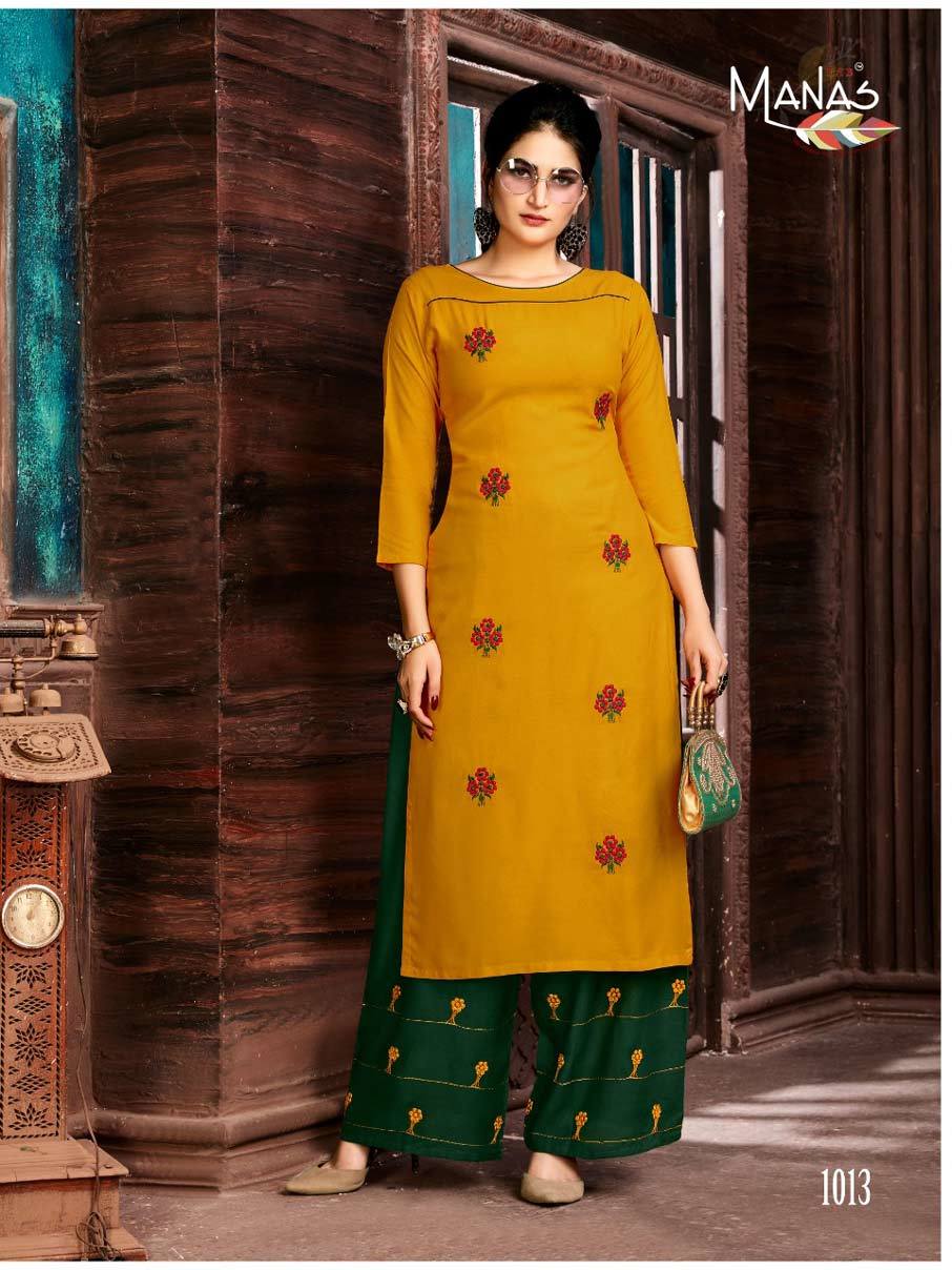 Explore in english - Anishka Vol-3 Manas Rayon Top Palazzo Kurti