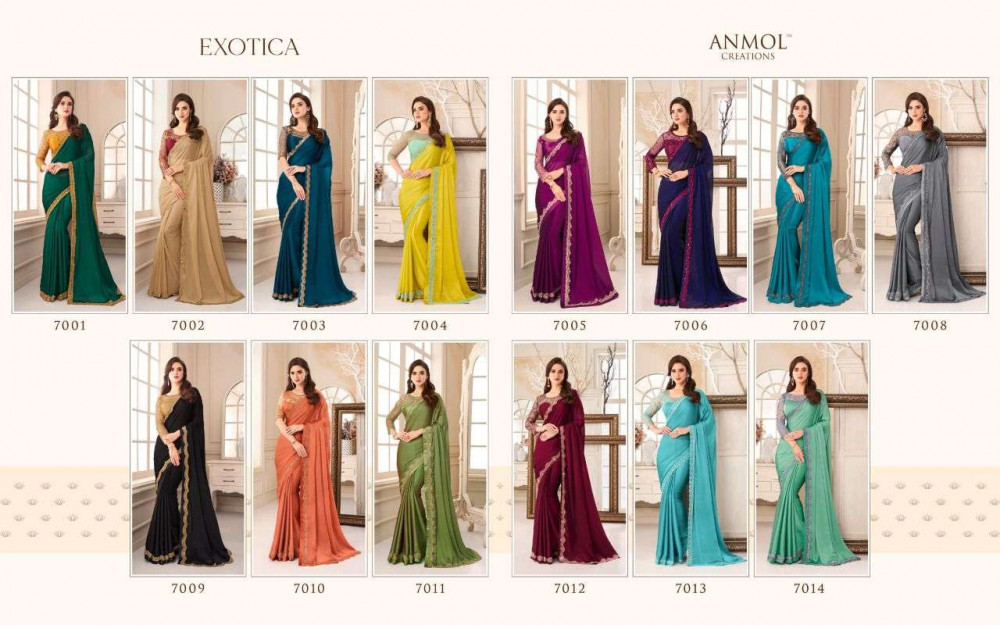 अनमोल क्रिएशन्स एक्सोटिक 7001-7014 सीरीज फैंसी साड़ी कैटलॉग