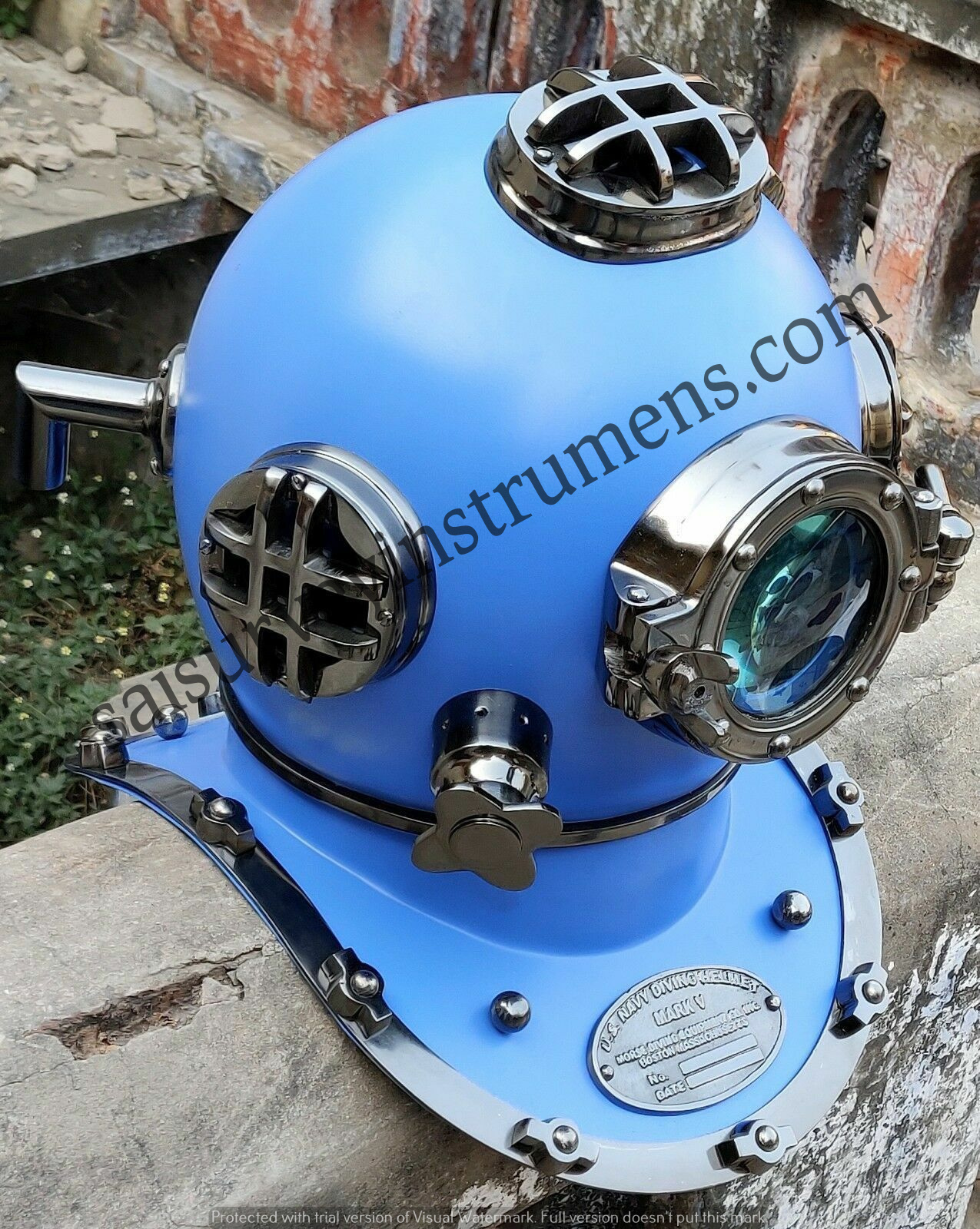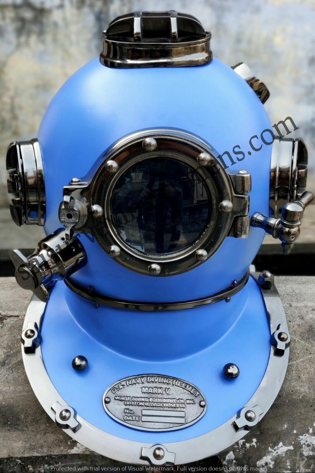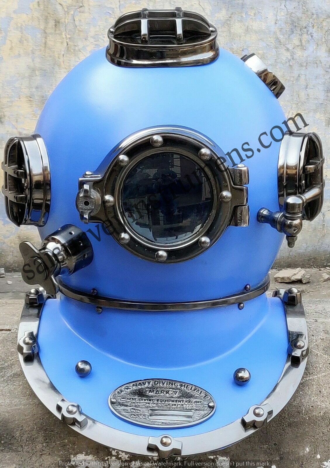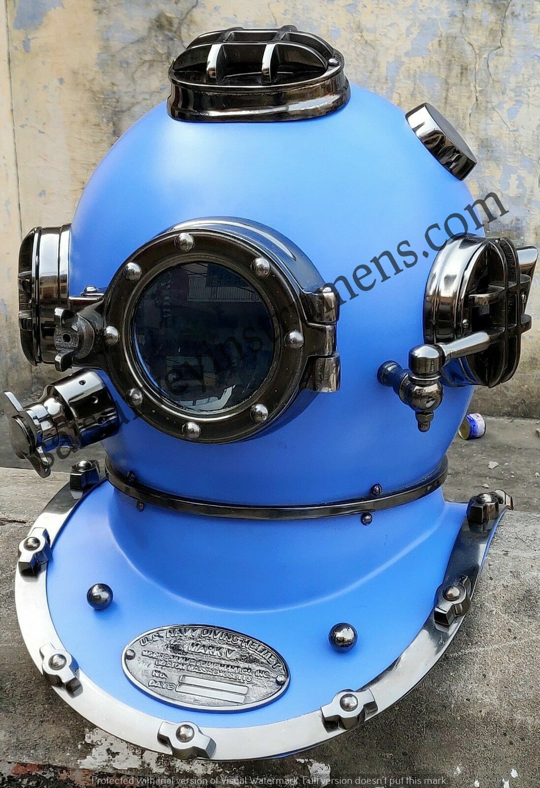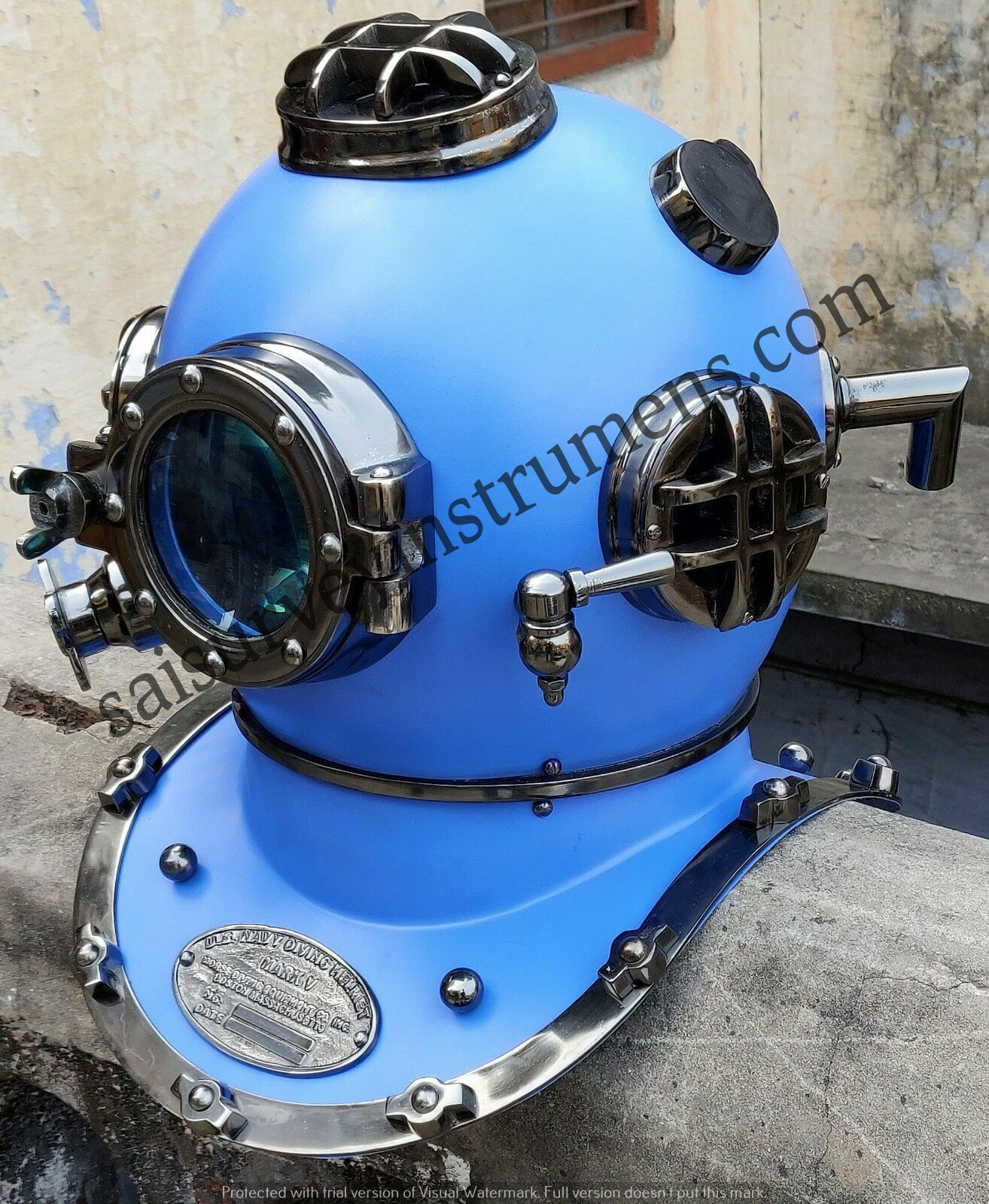 Explore in english - Antique Blue Full Size Divers Diving Helmet Scuba Us Navy Mark V Christmas Gift
