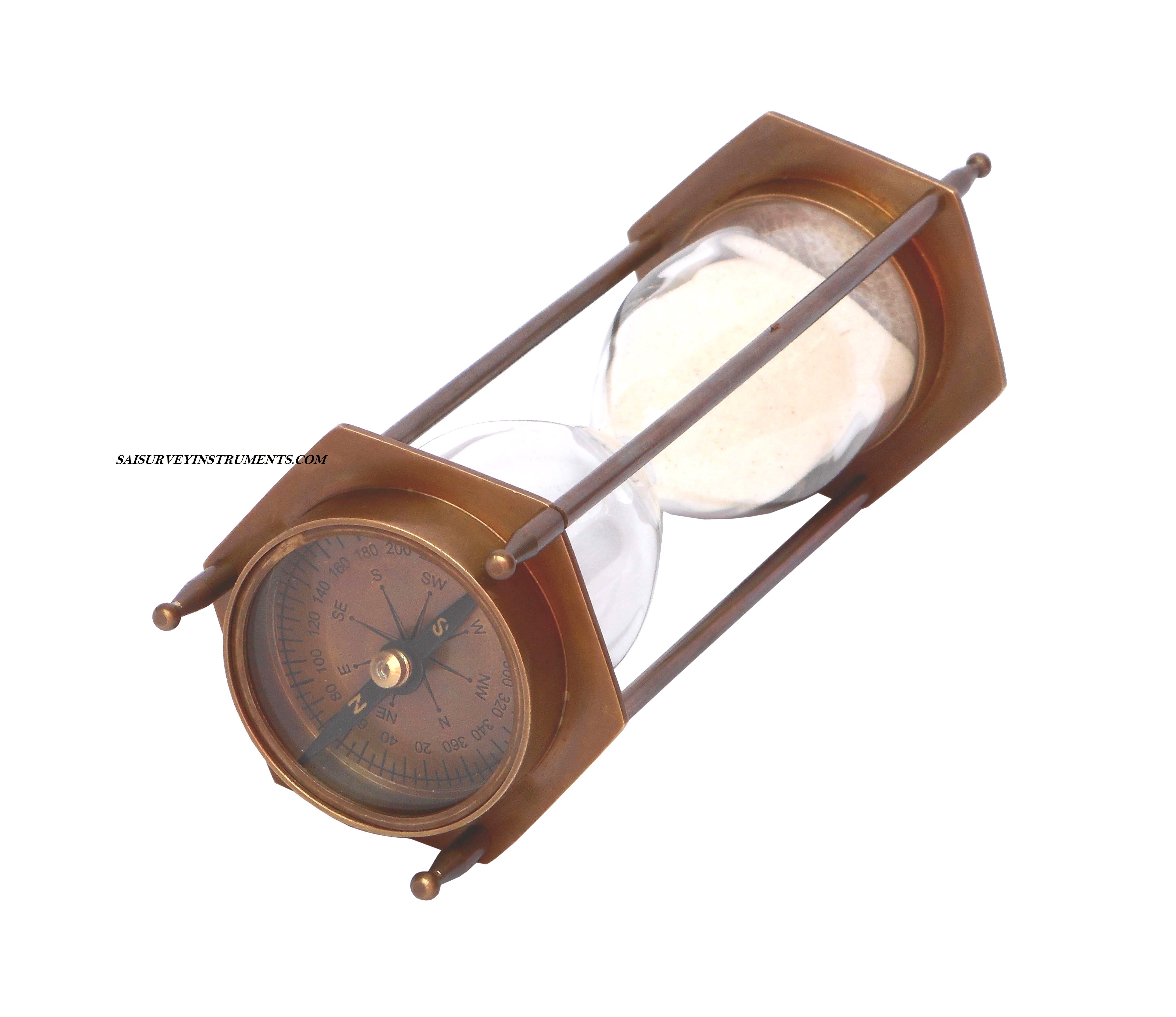 कंपास आयाम (L*W*H) के साथ एंटीक ब्रास ऑवरग्लास सैंड टाइमर: 5.5 इंच* 2 इंच* 5.5 इंच