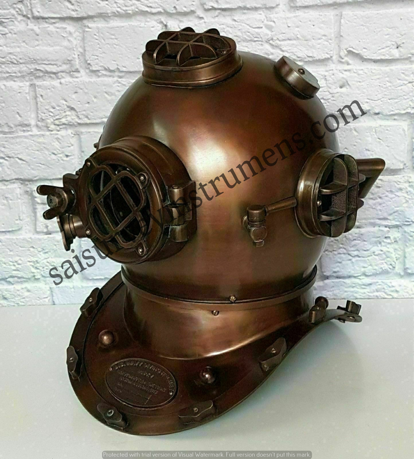 एंटीक डाइविंग हेलमेट बोस्टन ब्राउन नेवी मार्क डीप सी मरीन डाइवर्स स्कूबा मोर्स