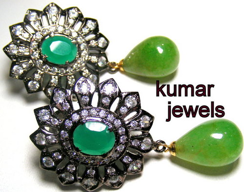- आर्टिफिशियल ईयररिंग्स, एंटीक डिजाइनर ईयररिंग्स में सिल्वर प्लेटेड, ग्रीन ड्रॉपिंग के साथ