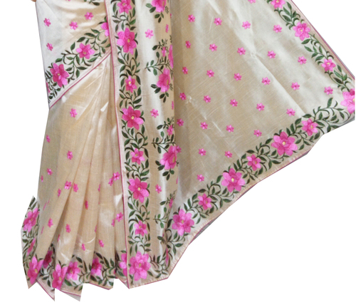 कशीदाकारी असम सिल्क रोज़ एम्ब्रायडरी साड़ी