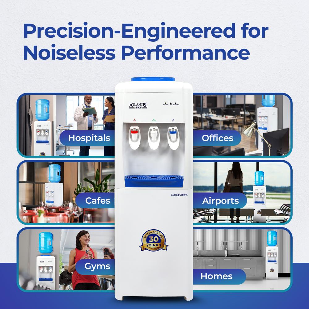 कूलिंग कैबिनेट के साथ व्हाइट अटलांटिस स्काई हॉट नॉर्मल और कोल्ड वाटर डिस्पेंसर