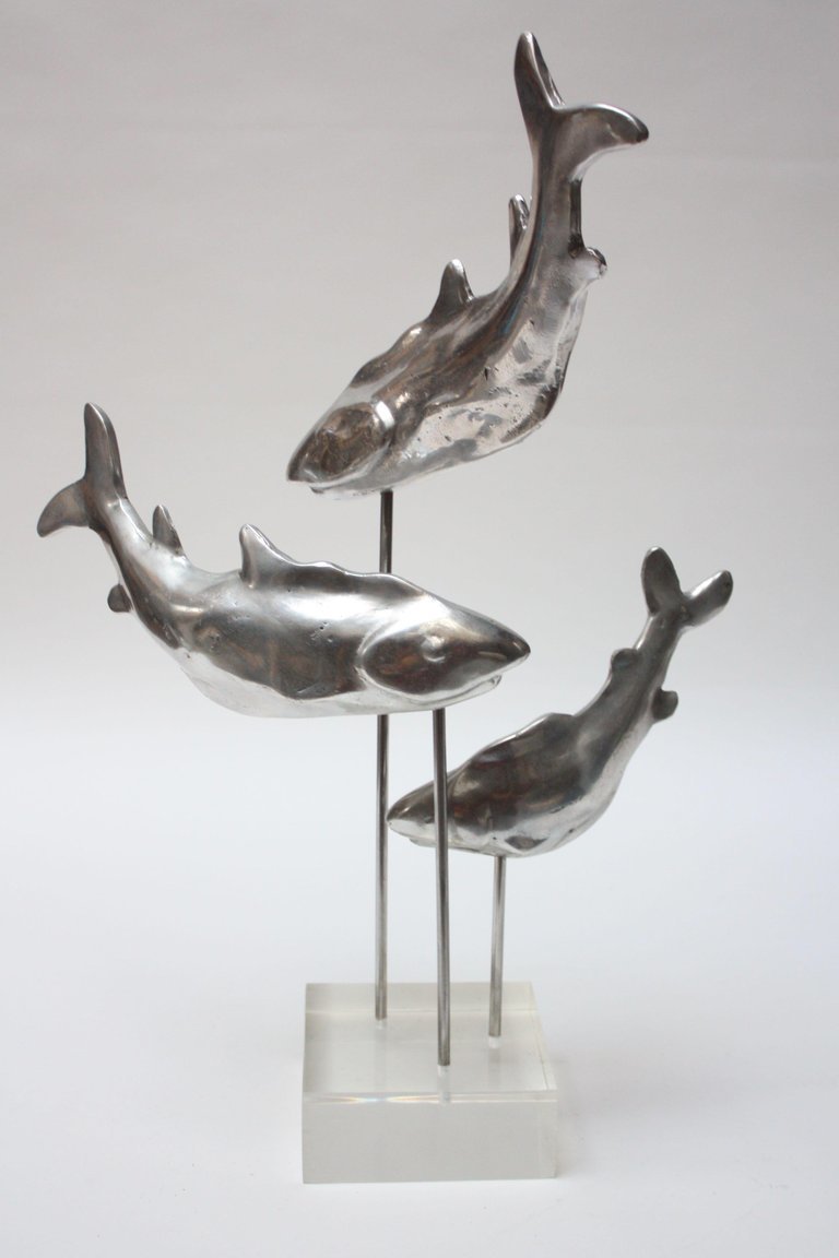 सिल्वर ऑरेल होम एल्यूमीनियम समकालीन शार्क मूर्तिकला