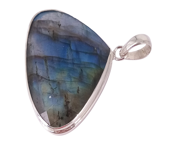 ब्लू ग्रे विस्मयकारी लैब्राडोराइट 925 सिल्वर जेमस्टोन पेंडेंट