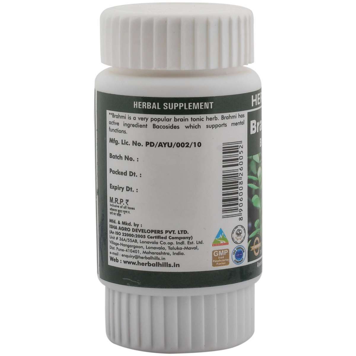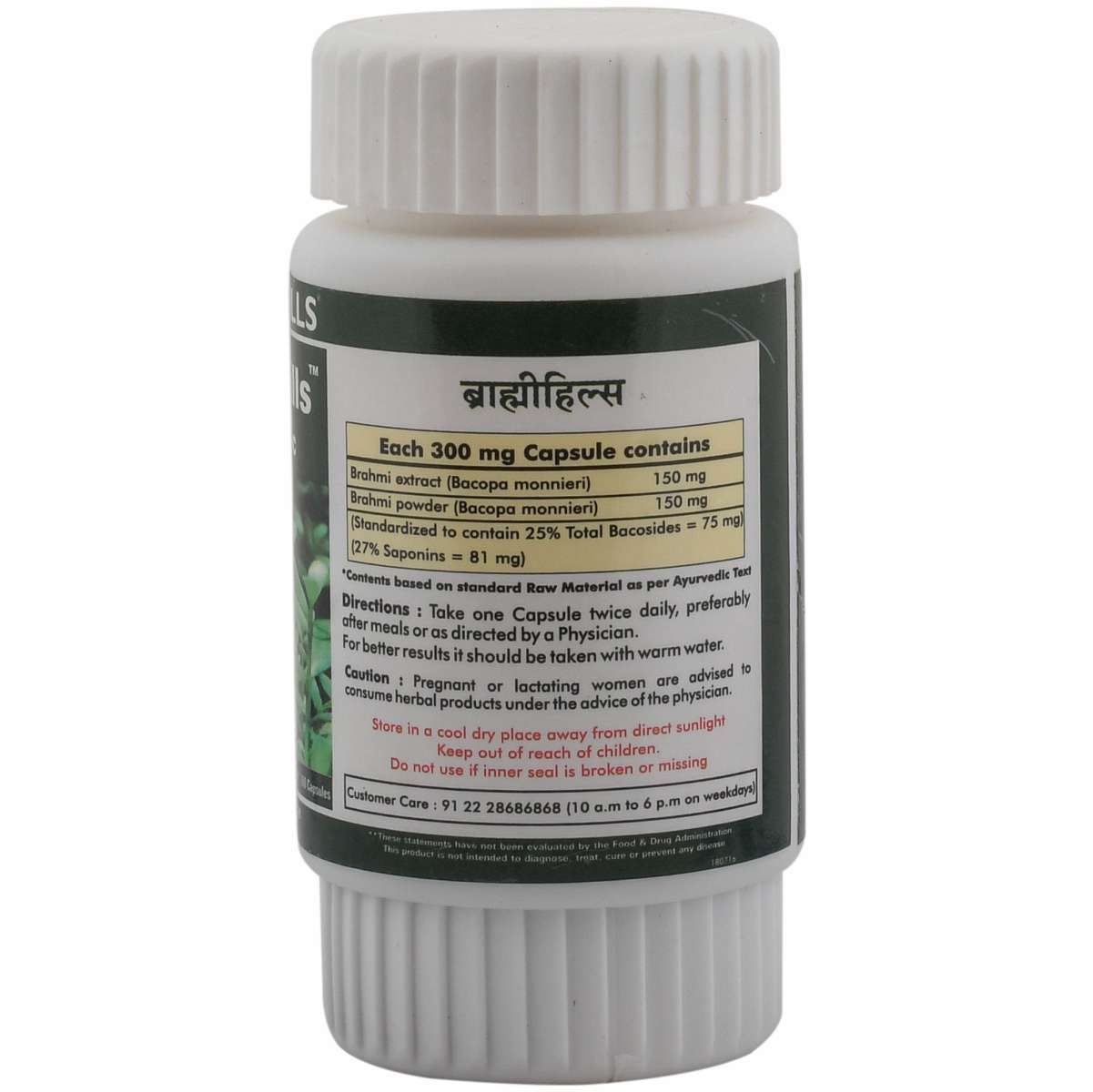 | सामग्रियां | Brahmihills (Brahmi) 300mg capsule is an Ayurvedic formulation of 150mg pure powder of Brahmi plant and 150mg Pure Brahmi plant extract, contains active levels of Saponins along with Bacosides which has strong cognitive & stress relieving properties. |