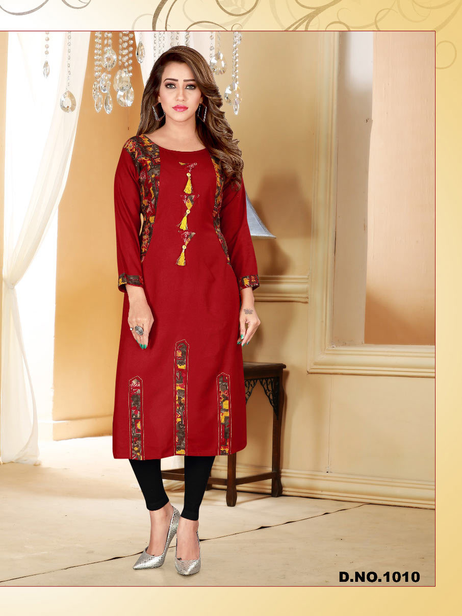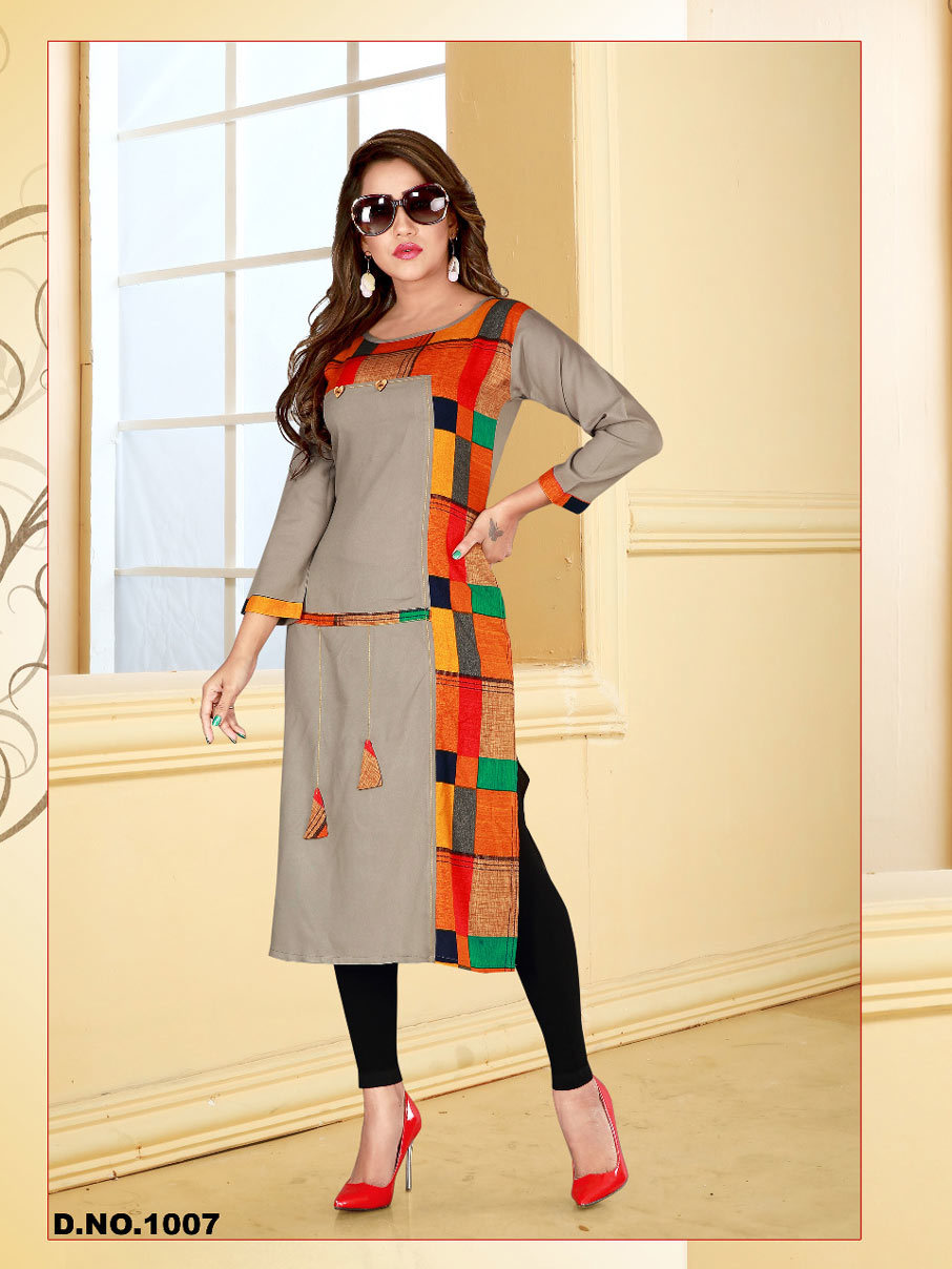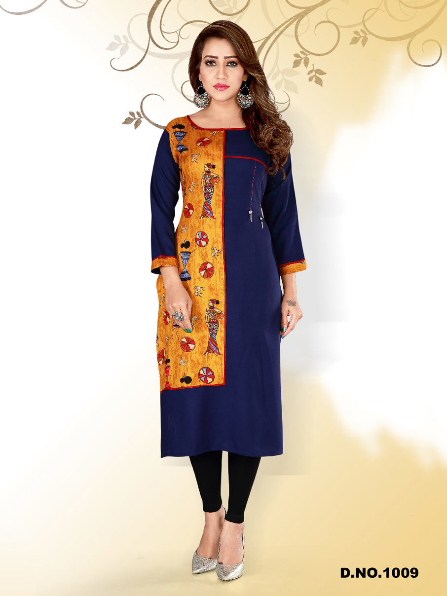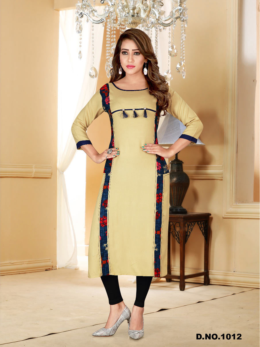 स्प्रिंग बेबी स्टाइल नव्या फैशन रेयॉन प्रिंट प्लेन कुर्ती