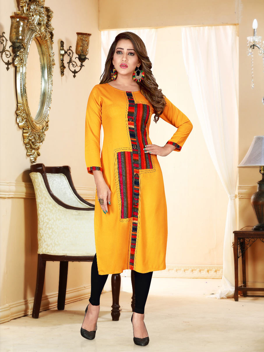 Explore in english - Baby Style Navya Fashion Rayon Print Plain Kurti