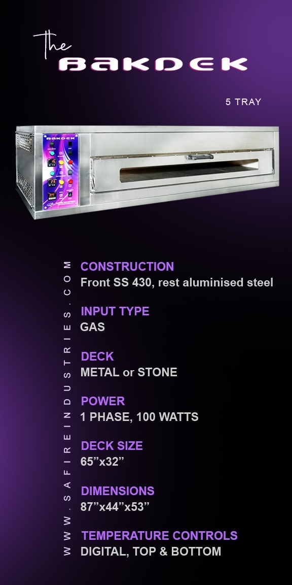 | प्रॉडक्ट टाइप | Bakdek Metal Single Deck Ovens 65 x 32 Gas |