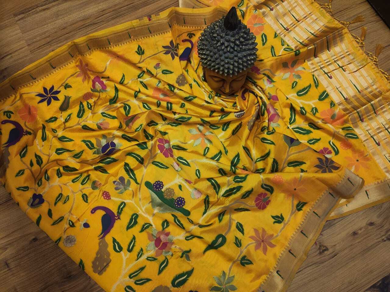 पीली बनारसी मनोबंगडी पैठानी साड़ी