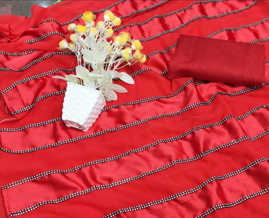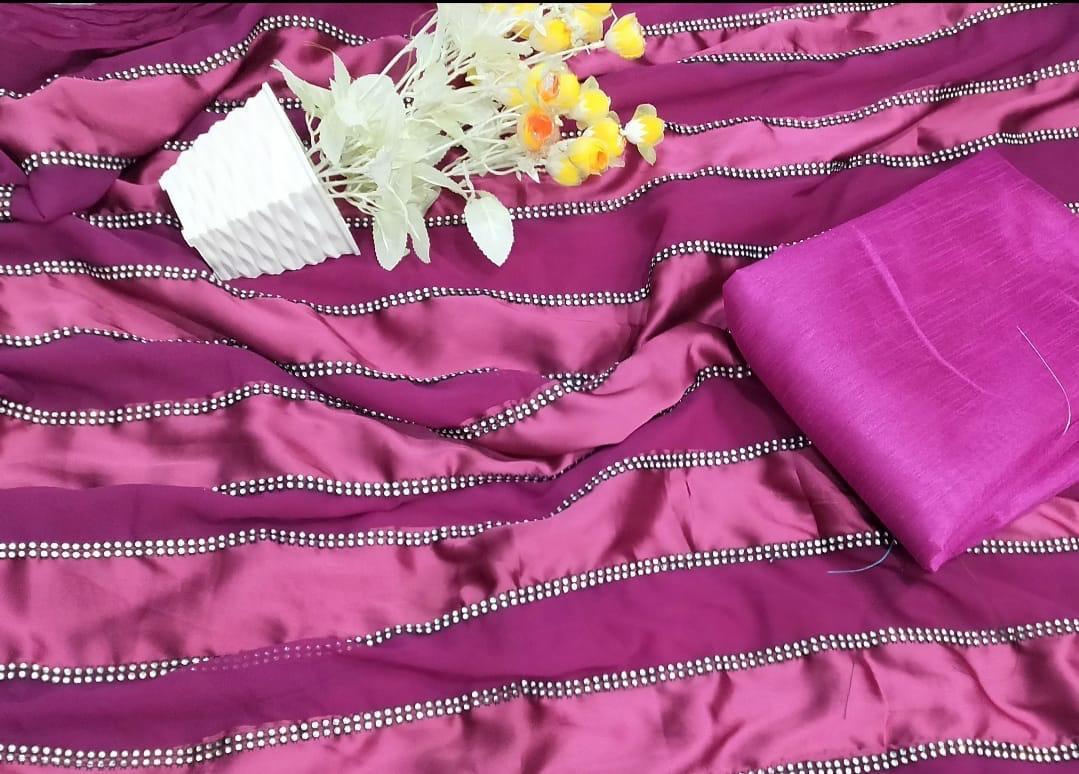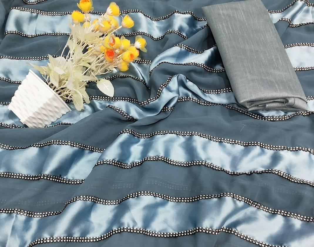 क्रीम रंग की महिलाओं की क्रश चिनोन साड़ी ब्लाउज़ और कमर बेल्ट के साथ