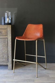 Explore in english - Bar Chair with Leather Seat and Pointed Legs
