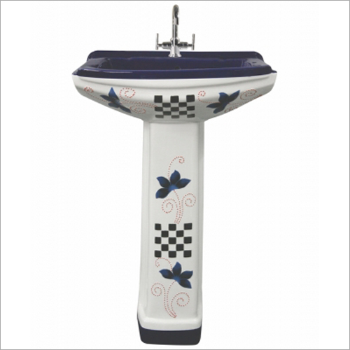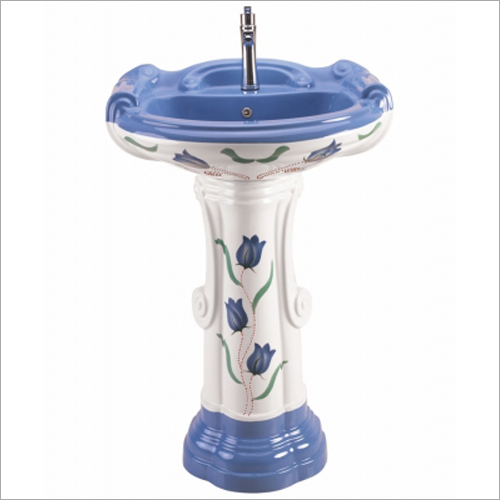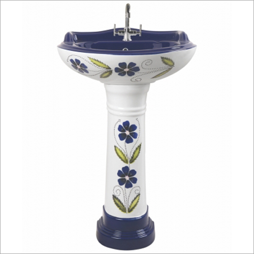 हाथ और चेहरे को धोने के लिए फ्लोर माउंटेड ग्लॉसी फिनिश सिरेमिक प्रिंटेड पेडस्टल वॉश बेसिन