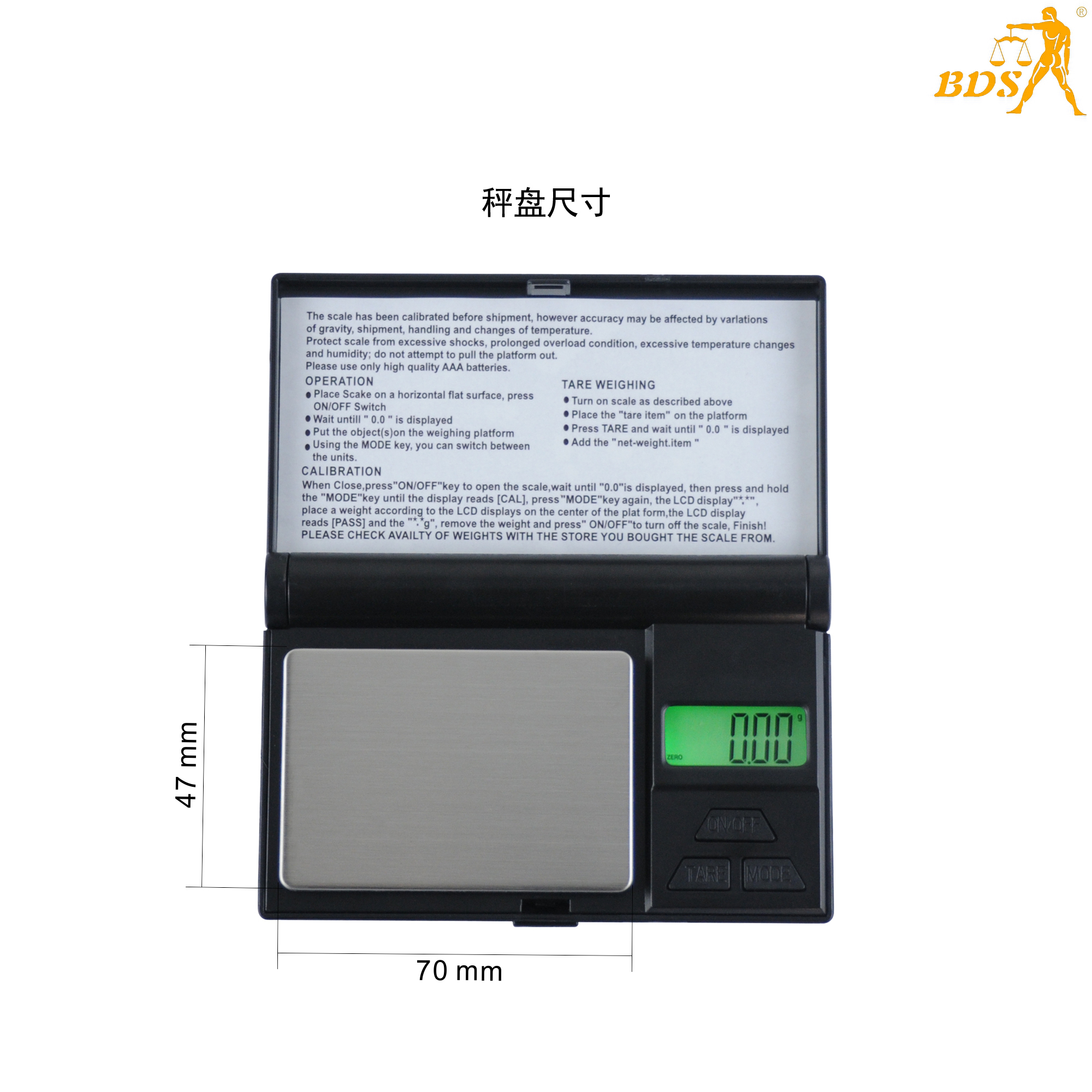 Bdscales उच्च गुणवत्ता वाले आभूषण स्केल 0.01g 0.1g पोर्टेबल इलेक्ट्रॉनिक डिजिटल पॉकेट स्केल क्षमता सीमा: 100g/200g/500g ग्राम (G)