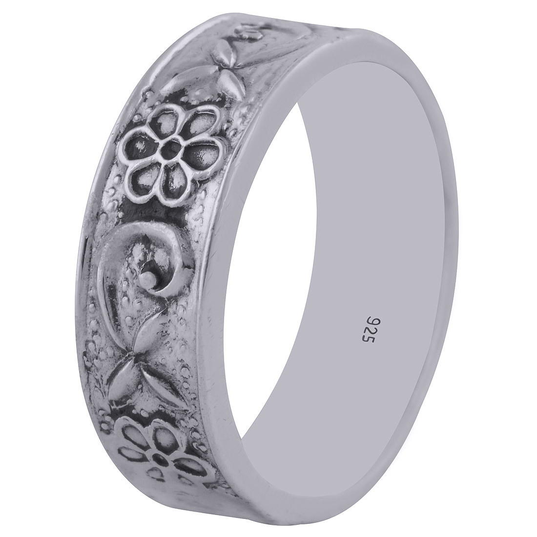 Explore in english - BEAUTIFUL EMBOSSED FLOWER PLAIN 925 STERLING SOLID SILVER HANDMADE RING