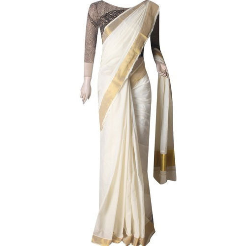 कॉटन सुंदर स्टाइलिश सांस लेने योग्य डिज़ाइनर वियर मॉडर्न और ट्रेंडी पार्टी वियर बॉर्डर डिज़ाइनर केरल साड़ी