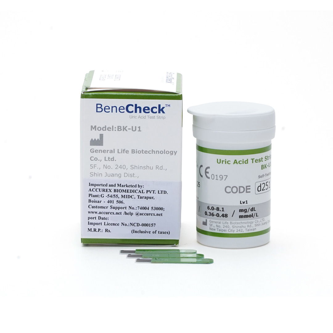 Explore in english - BeneChek Uric Acid Strips - Pack of 25 Strips - Accurex