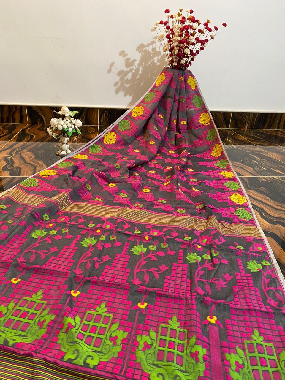 कॉटन सिल्क बंगाल जामदानी साड़ी
