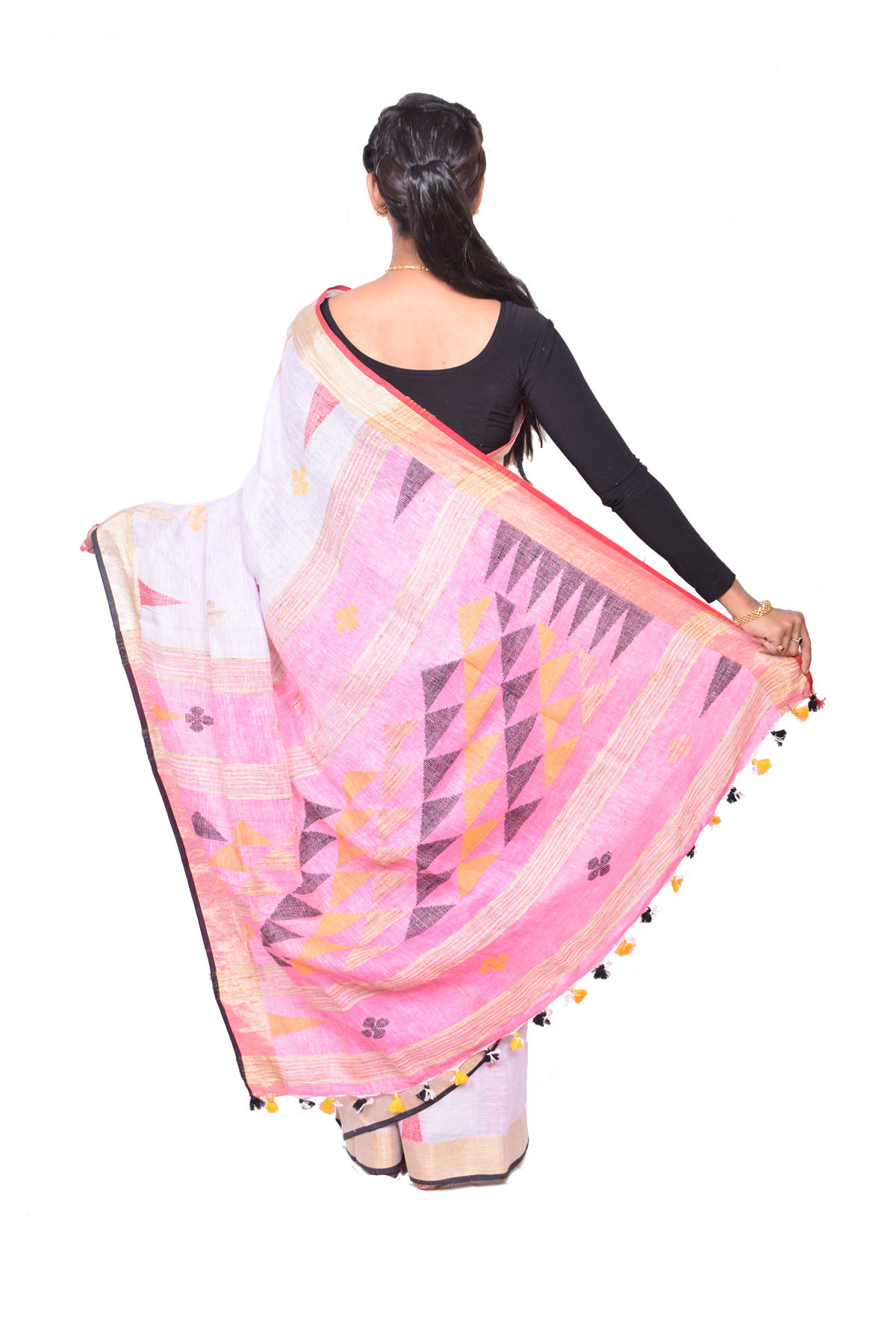 व्हाइट बंगाल लिनन जामदानी साड़ी