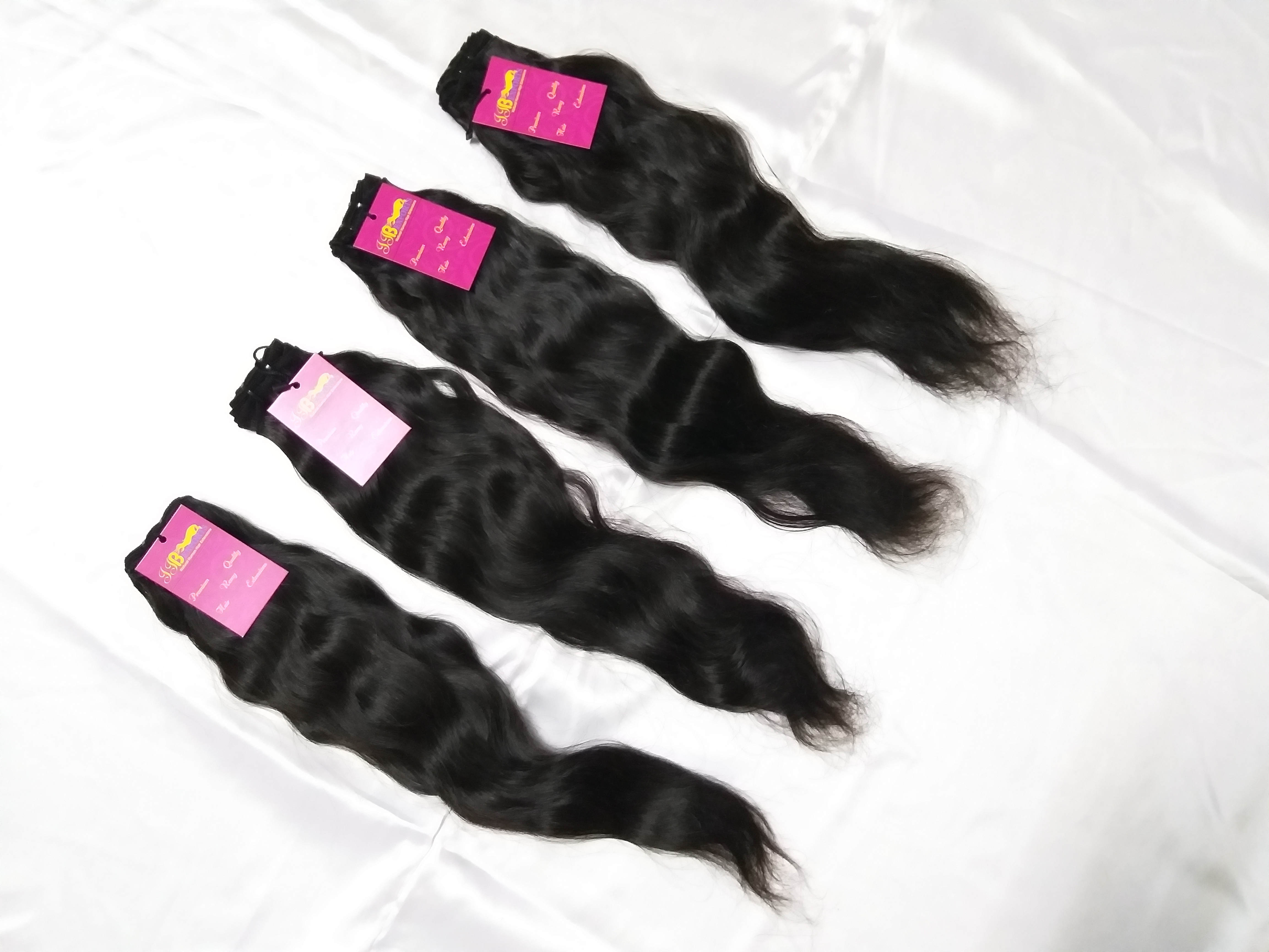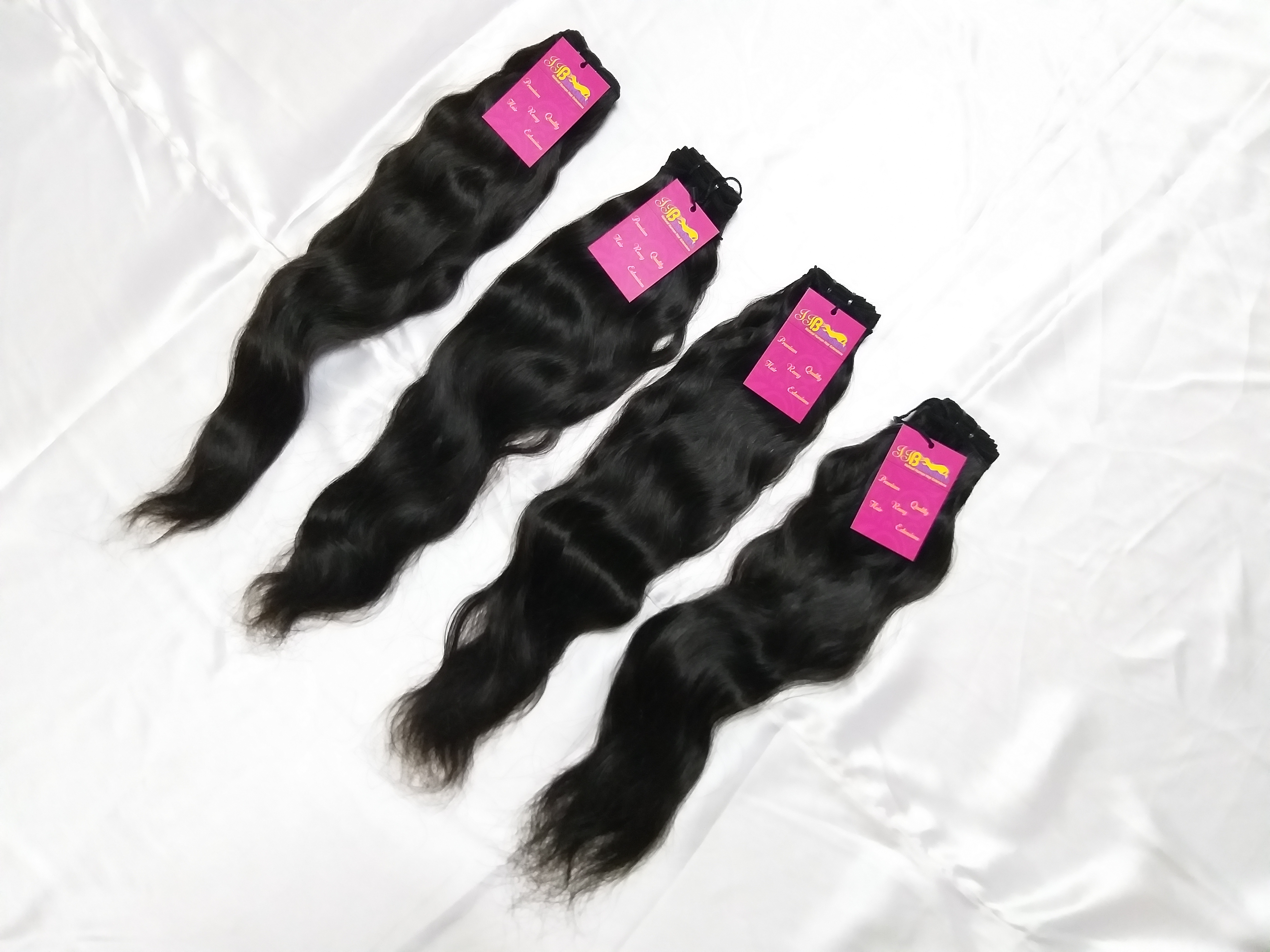 नेचुरल ब्लैक बेस्ट क्वालिटी 100% अनप्रोसेस्ड मिंक वर्जिन वेवी इंडियन वेव क्यूटिकल अलाइंड हेयर एक्सटेंशन्स