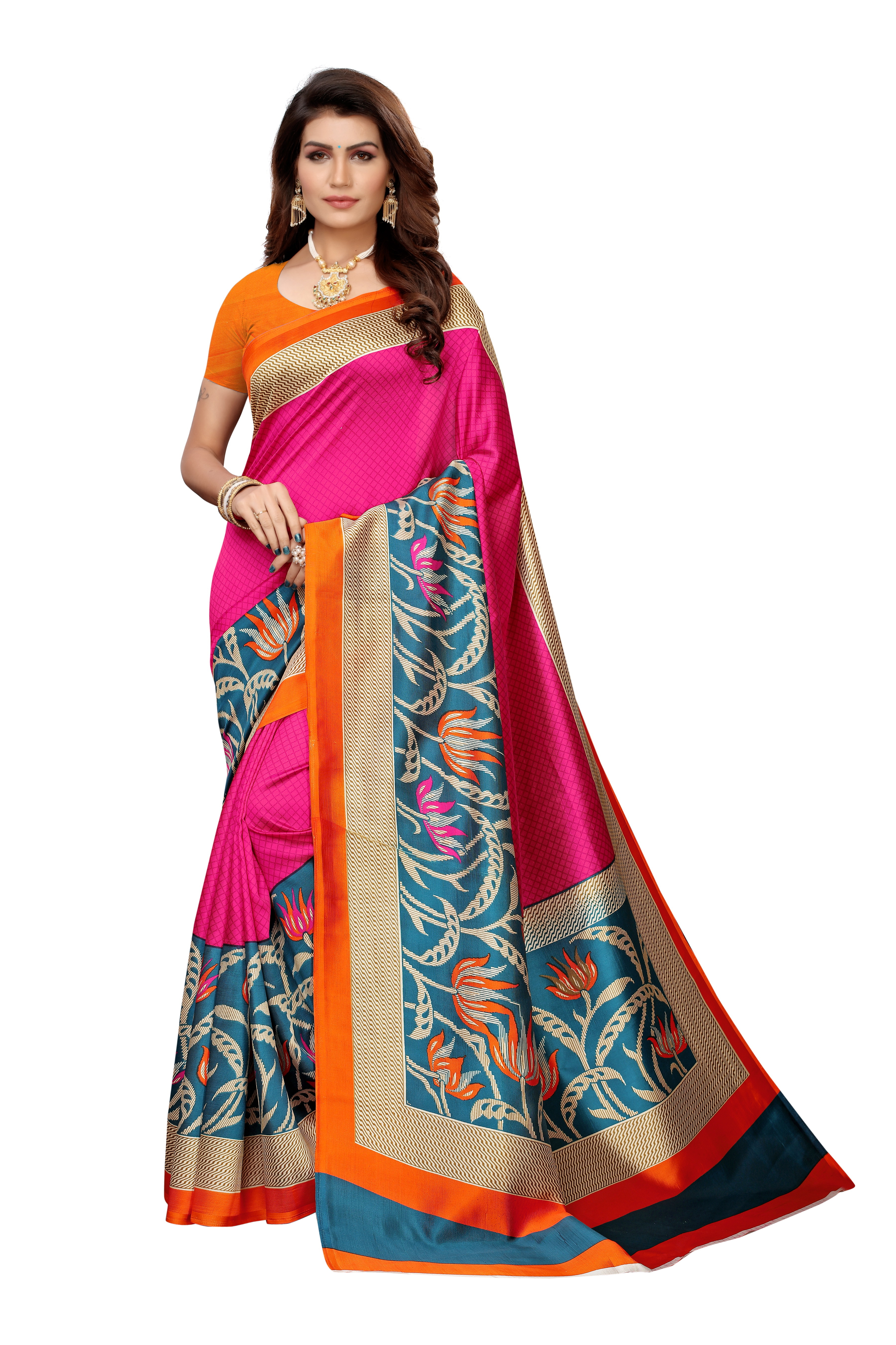 मल्टीकलर बिग बॉर्डर डिज़ाइन कलमकारी सिल्क साड़ी