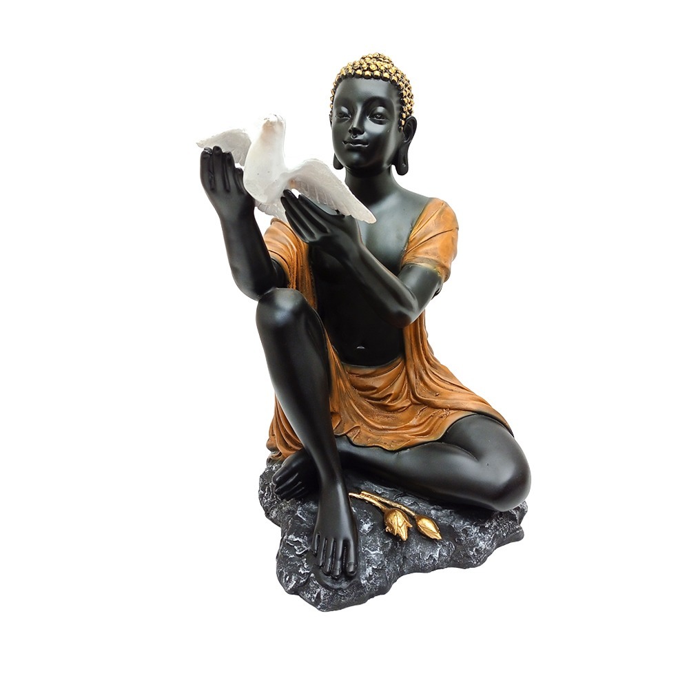 हाथ में पक्षी के साथ बहुरंगी बड़ी बुद्ध प्रतिमा/मूर्ति