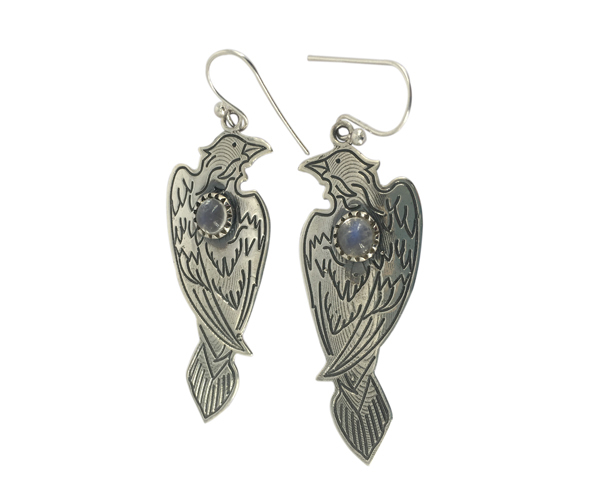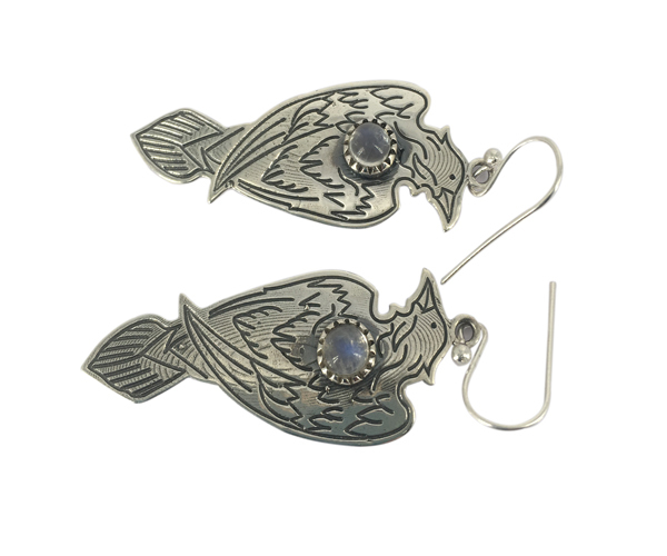 राउंड बर्ड डिज़ाइन रेनबो मूनस्टोन 925 सिल्वर ईयररिंग