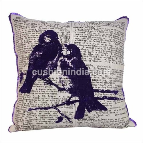 बर्ड एंड न्यूज पेपर आर्ट प्रिंटेड कॉटन कुशन