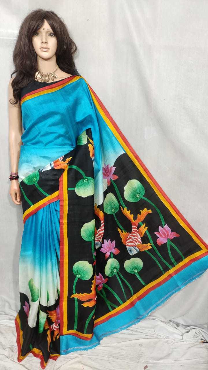 मल्टी कलर बिष्णुपुरी सिल्क हैंडपेंट साड़ी