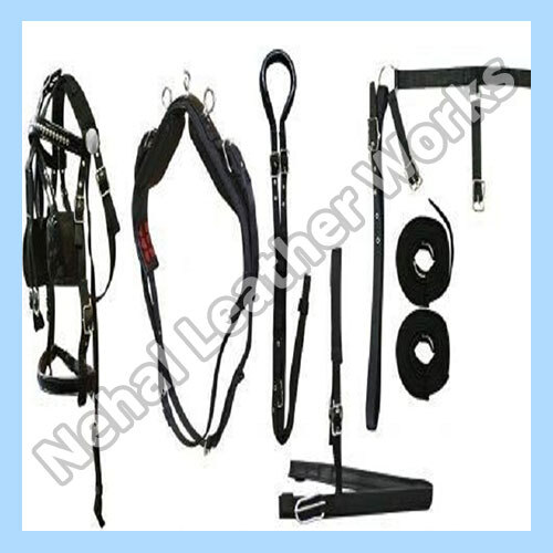 सॉफ्ट एंड स्मूथ टेक्सचर के साथ लेदर ब्लैक कलर हॉर्स हार्नेस सेट