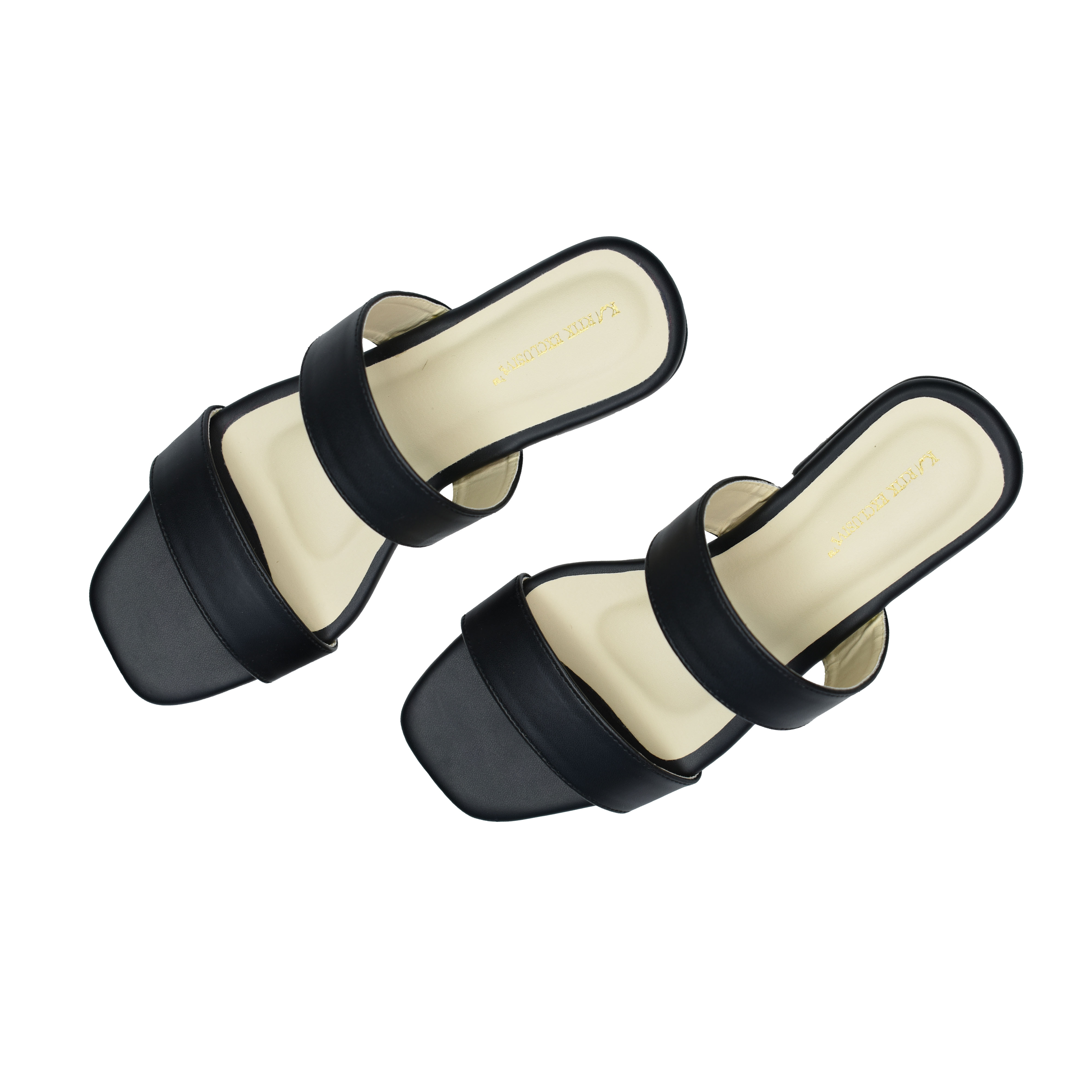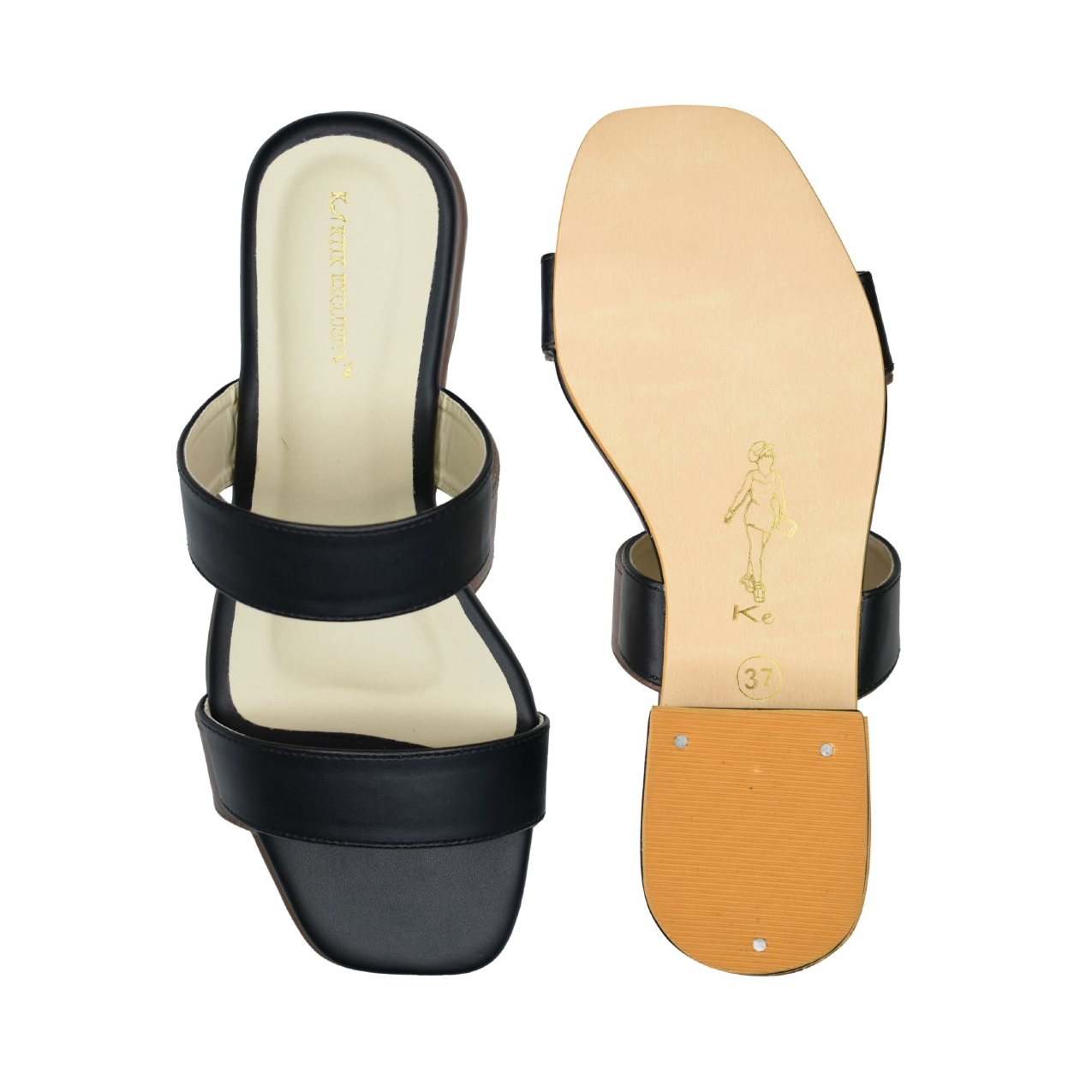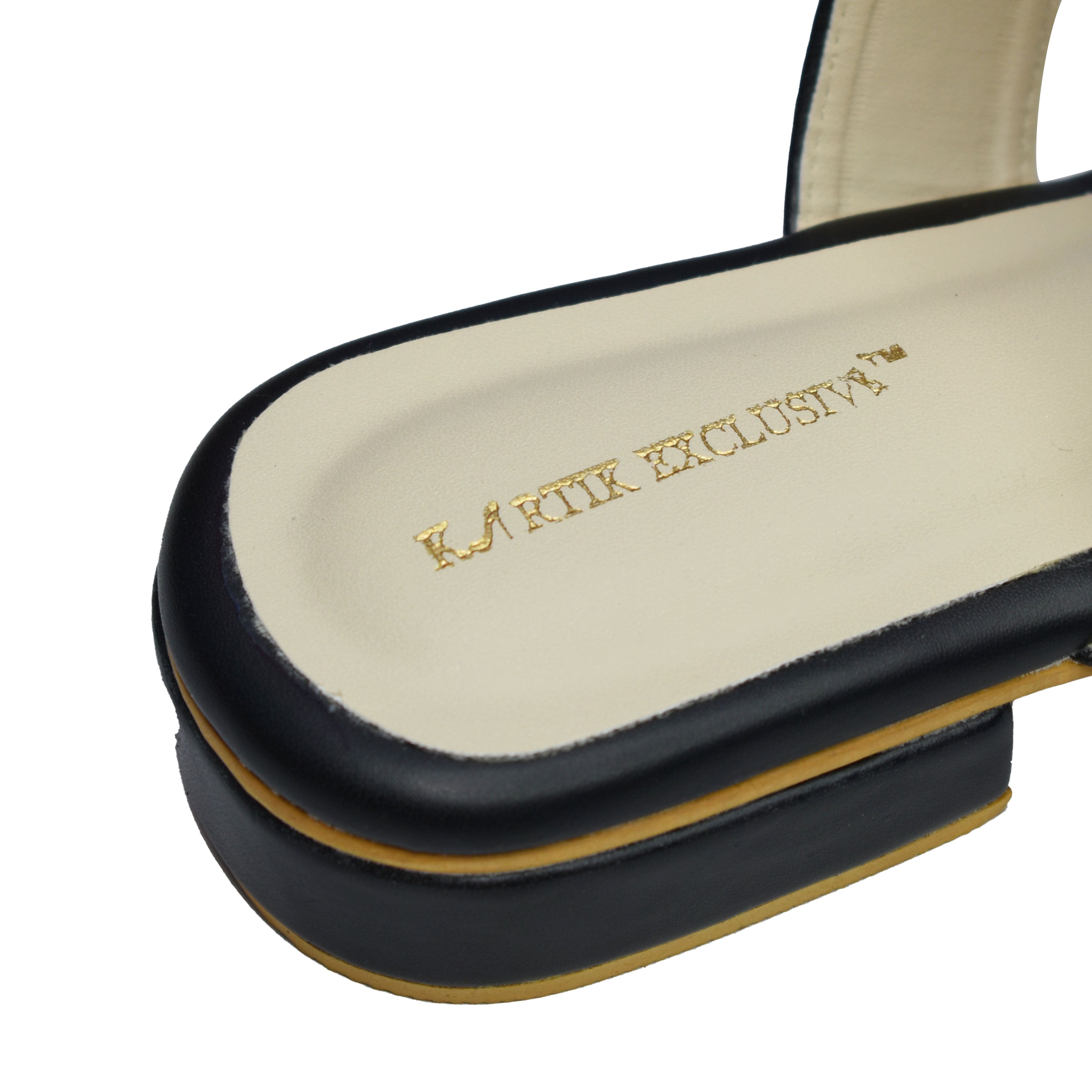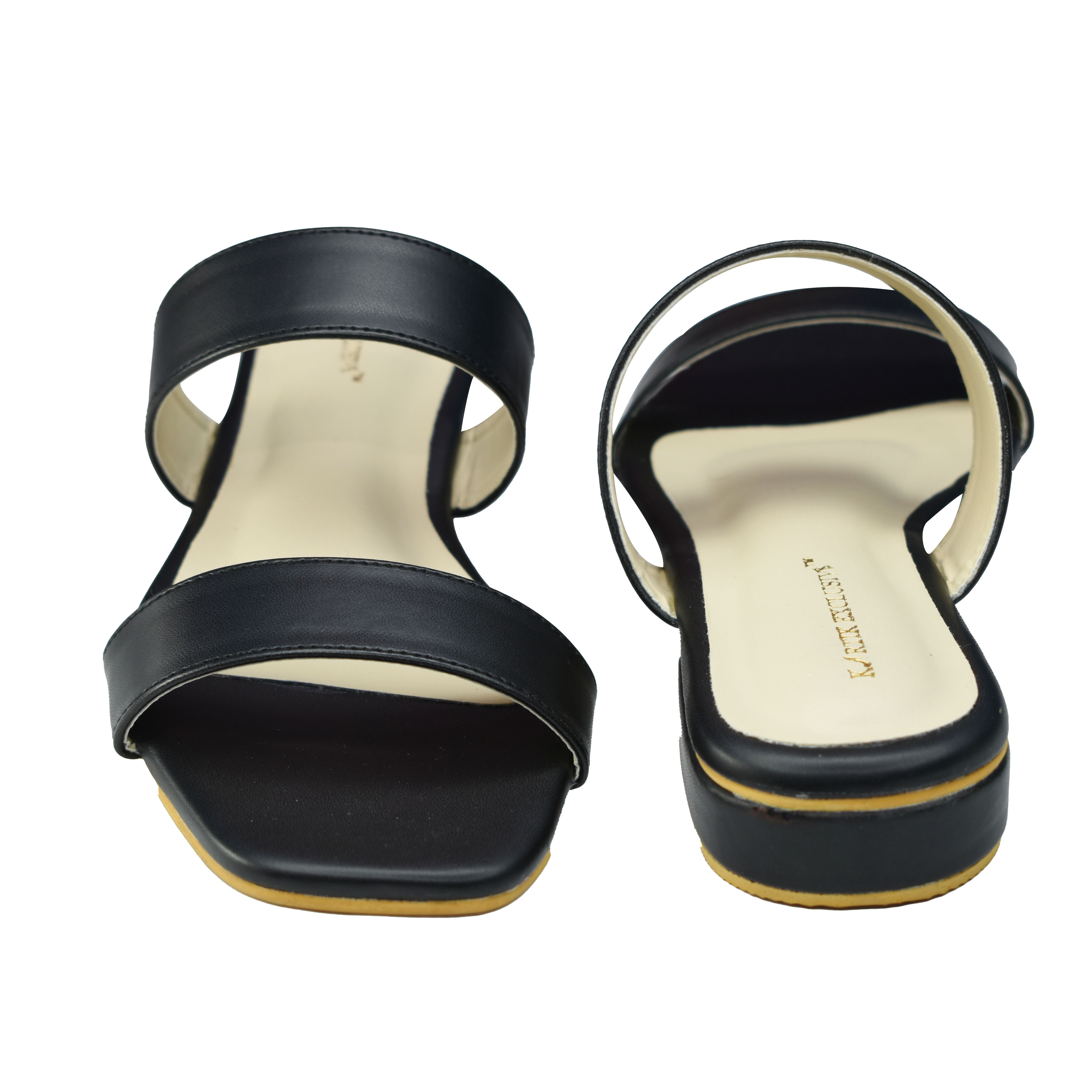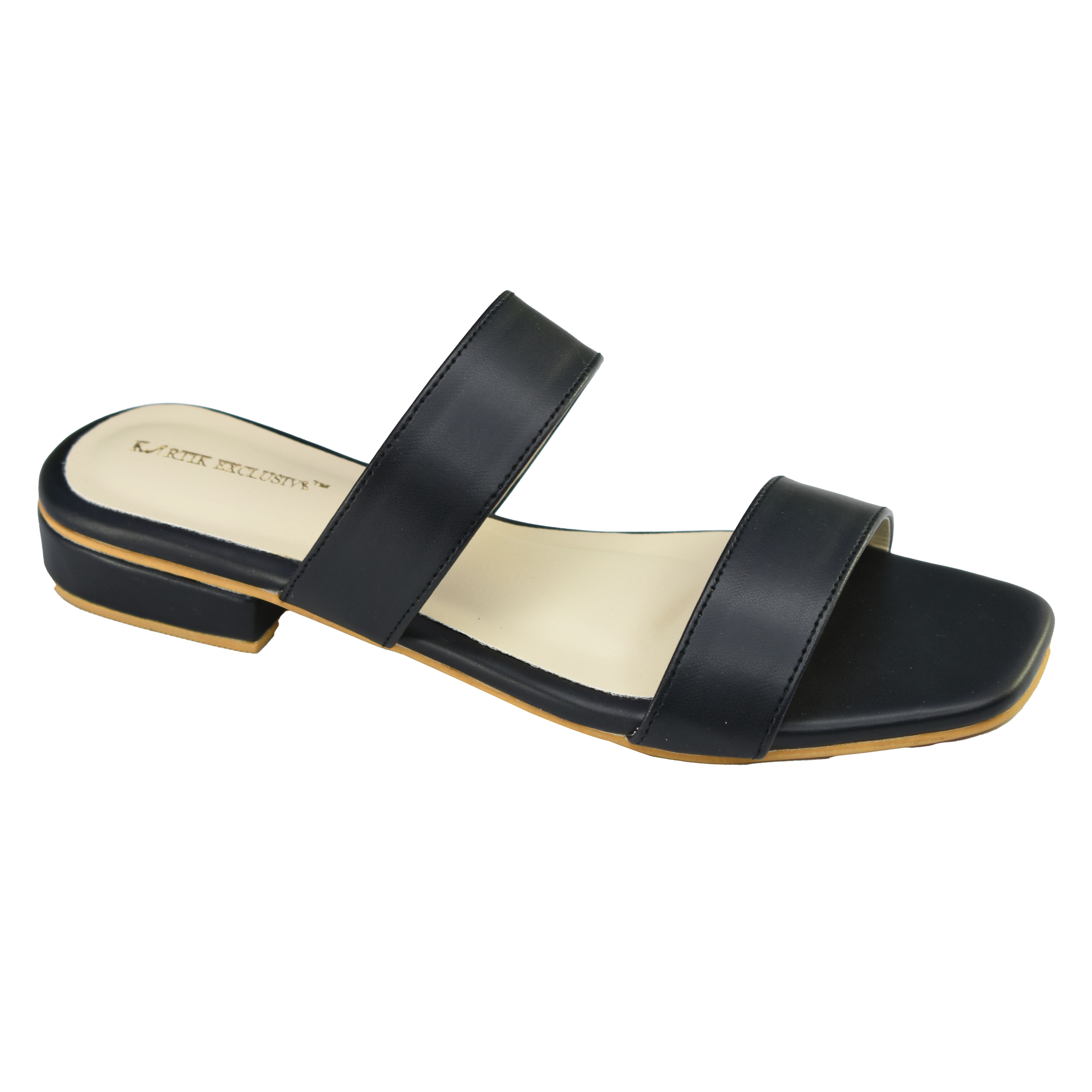 लेदर ब्लैक कलर टू स्ट्रिप फ्लैट सैंडल