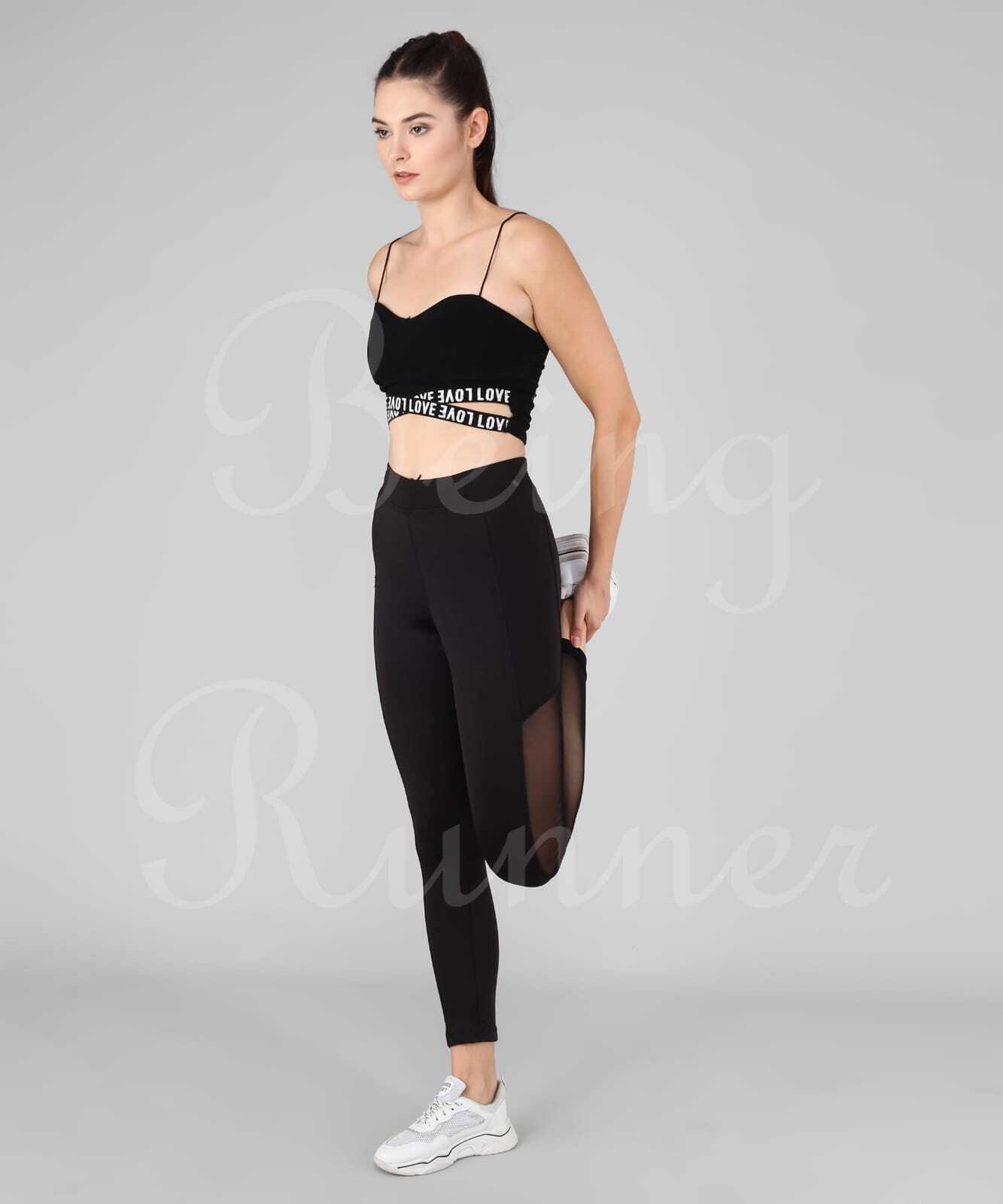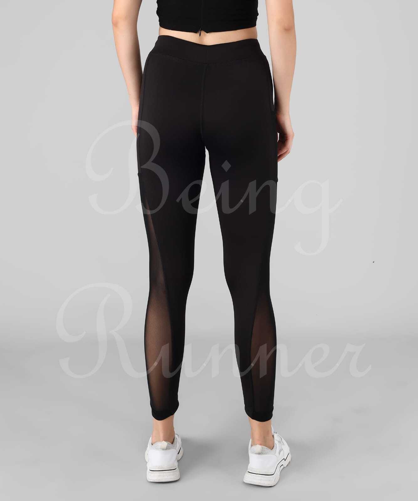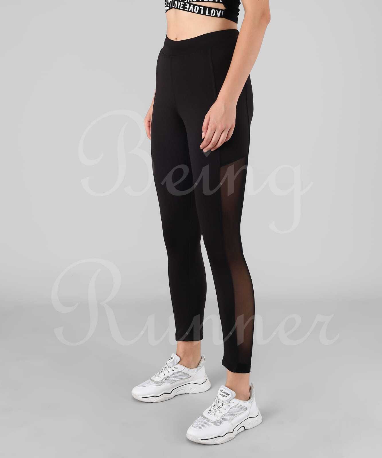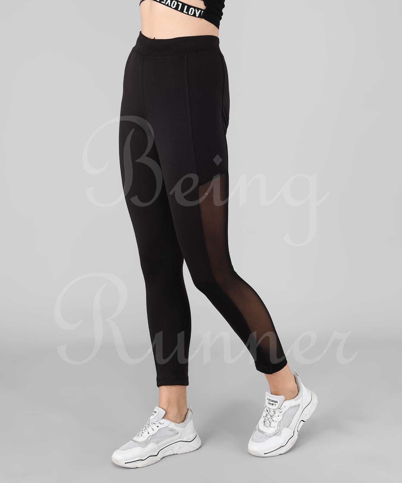 Explore in english - Being Runner Trendy Black With Mesh Full Net Slim Fit Gym Tights