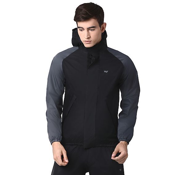 Explore in english - Black Full Sleeves Hooded Windcheater Jacket
