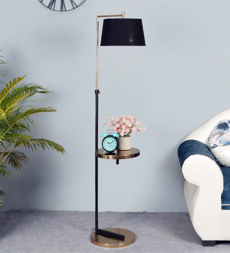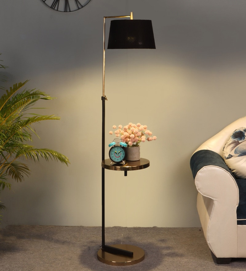 नीलम द्वारा काले पीतल के आधार के साथ ब्लैक आयरन क्लॉथ शेड फ्लोर टेबल लैंप