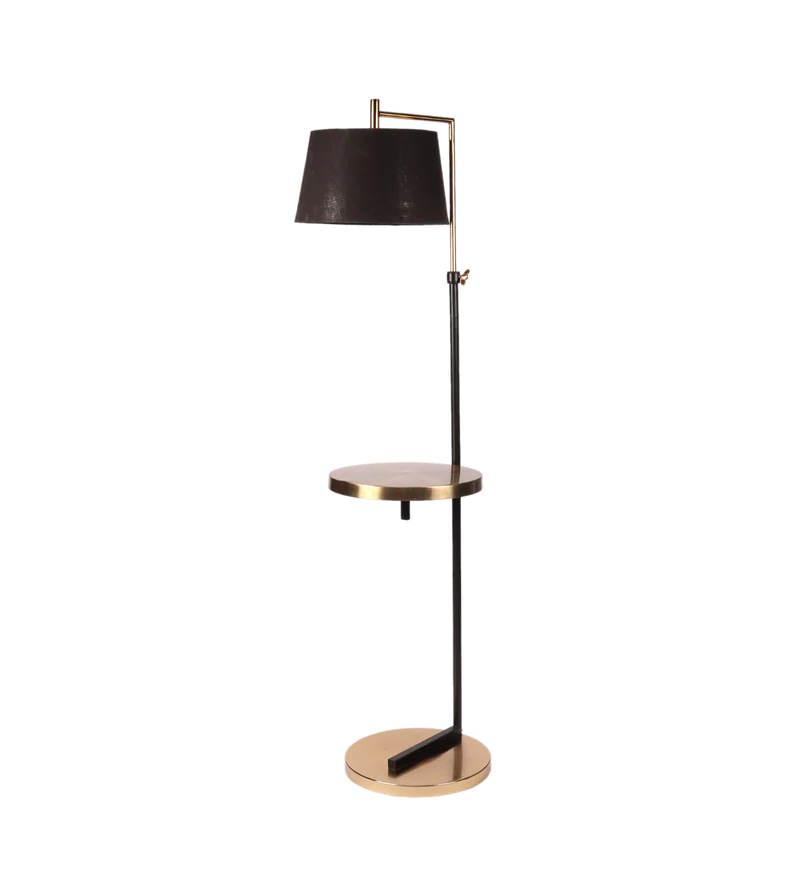 Explore in english - Black Iron Cloth Shade Floor Table Lamp With Black Brass Base By Sapphire