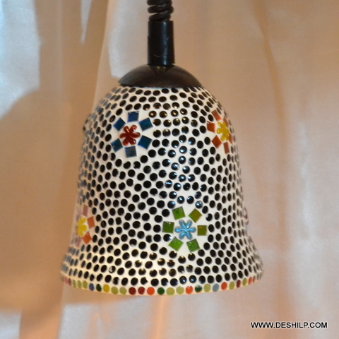 हस्तनिर्मित ब्लैक मोज़ेक वॉल हैंगिंग डेकोर लैंप