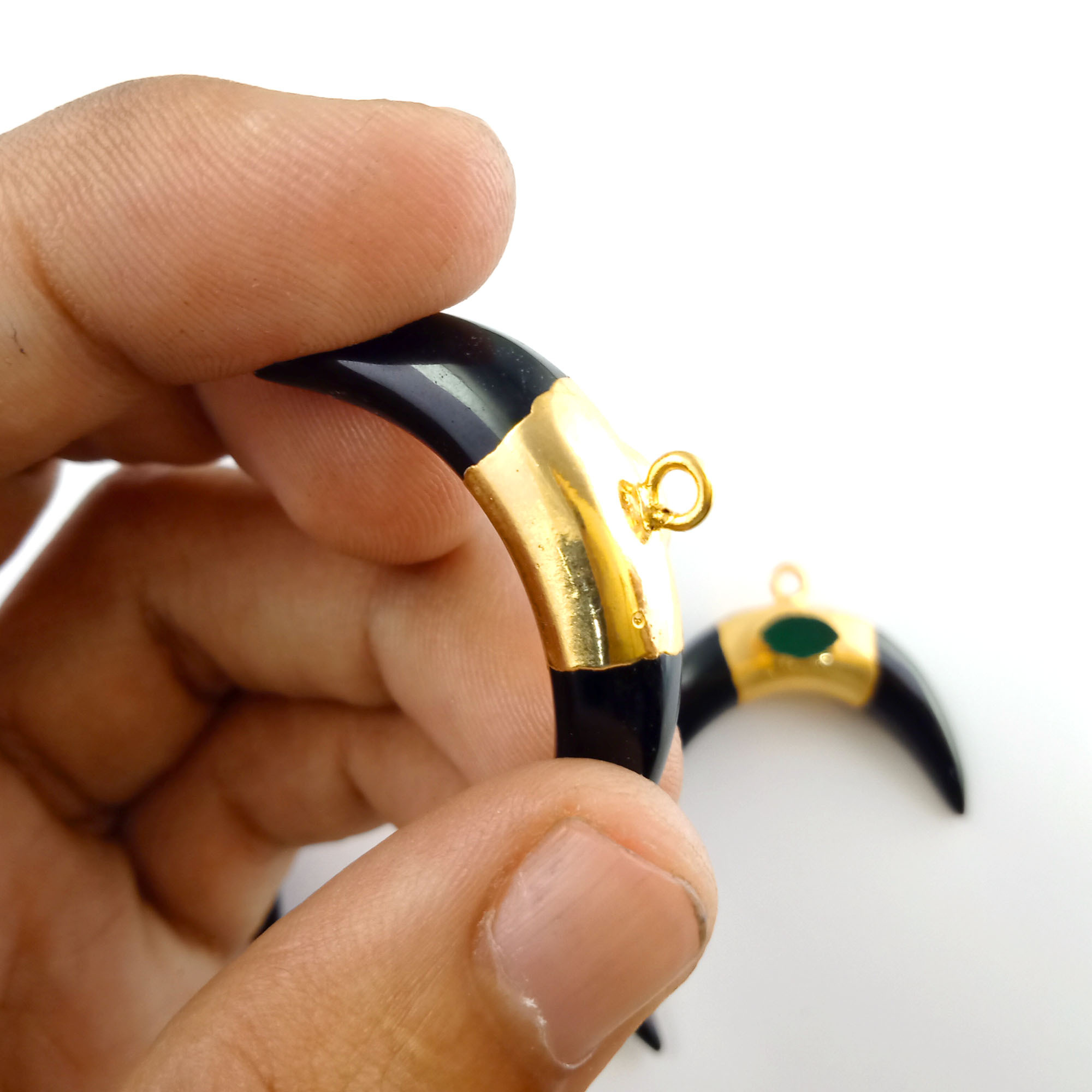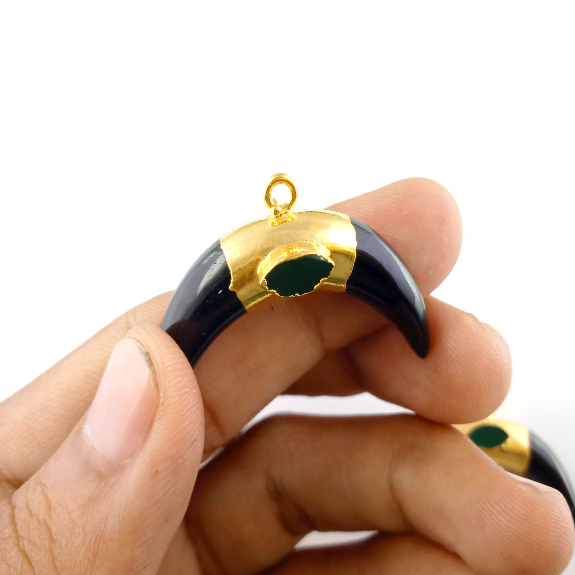 पियर ब्लैक ओनिक्स क्रिसेंट पेंडेंट जेमस्टोन हाफ मून शेप गोल्ड इलेक्ट्रोप्लेटेड पेंडेंट नेकलेस