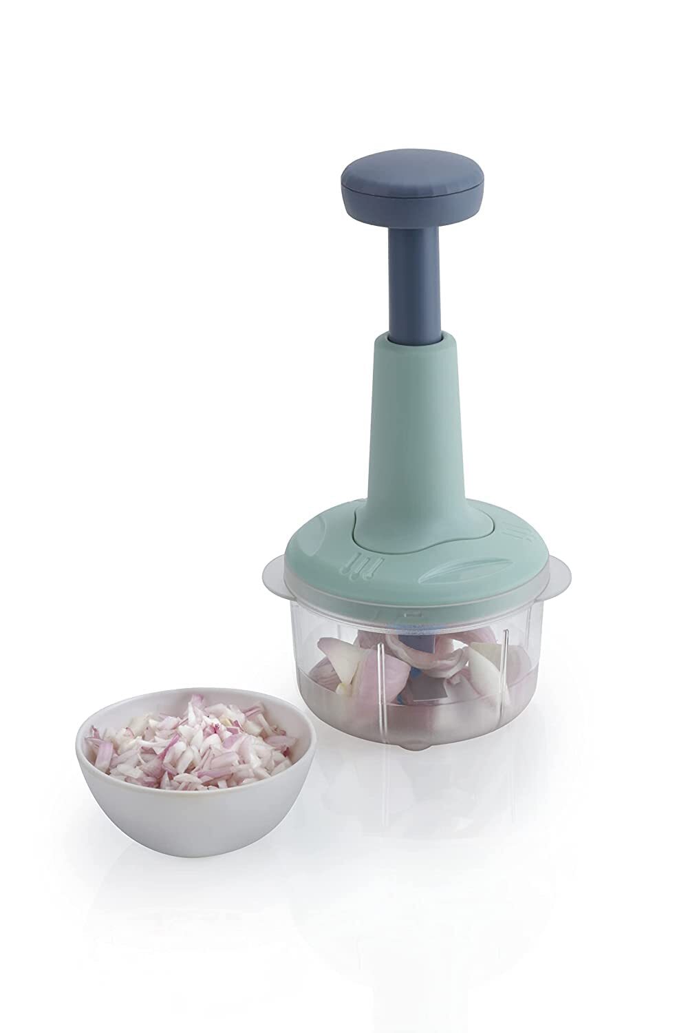 मल्टीकलर ब्लेड फूड चॉपर मैनुअल हैंड-प्रेस वेजिटेबल चॉपर मिक्सर कटर (680ml)