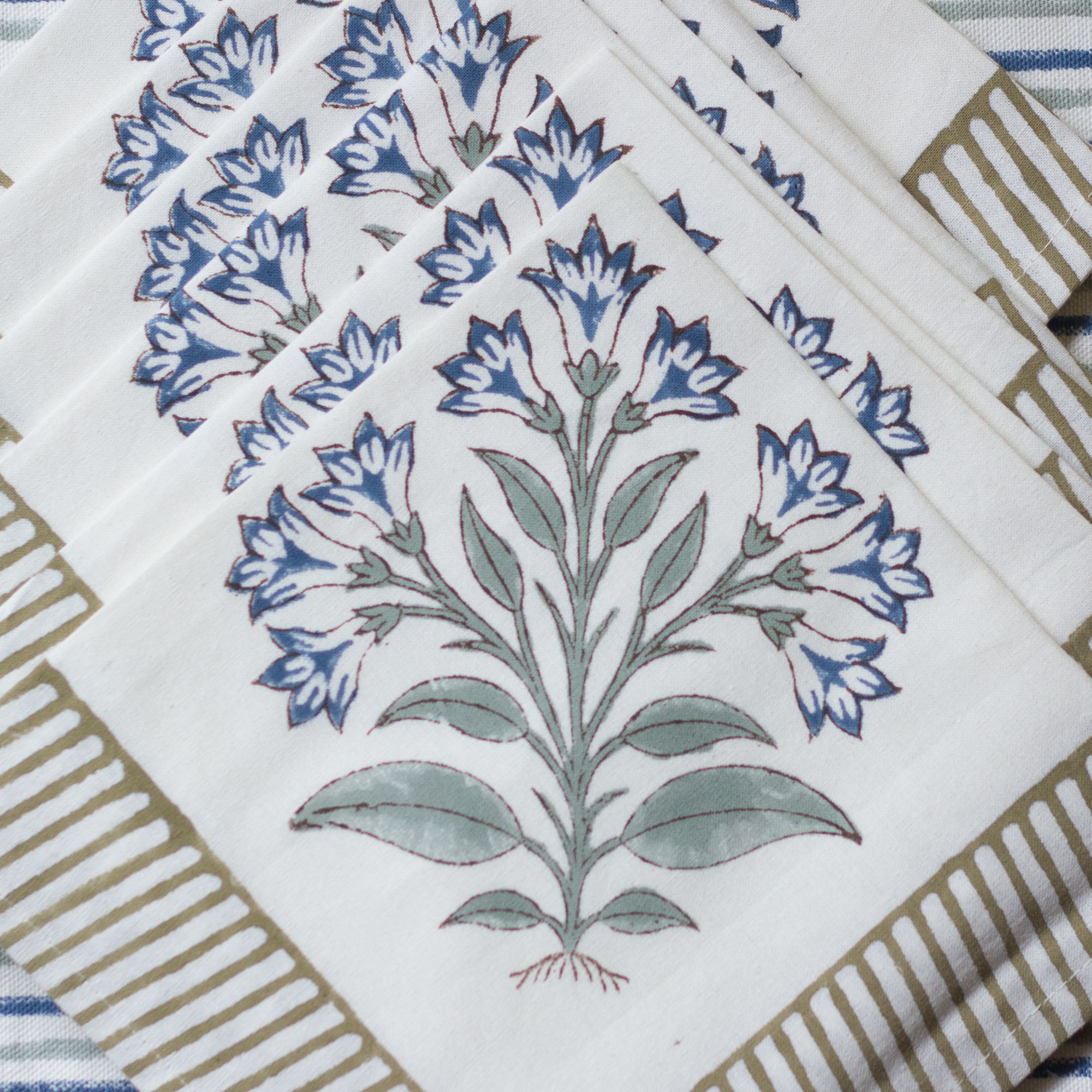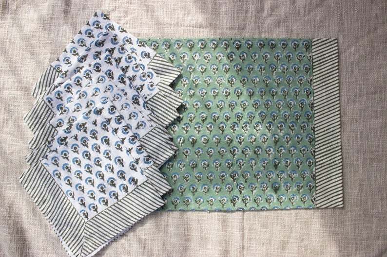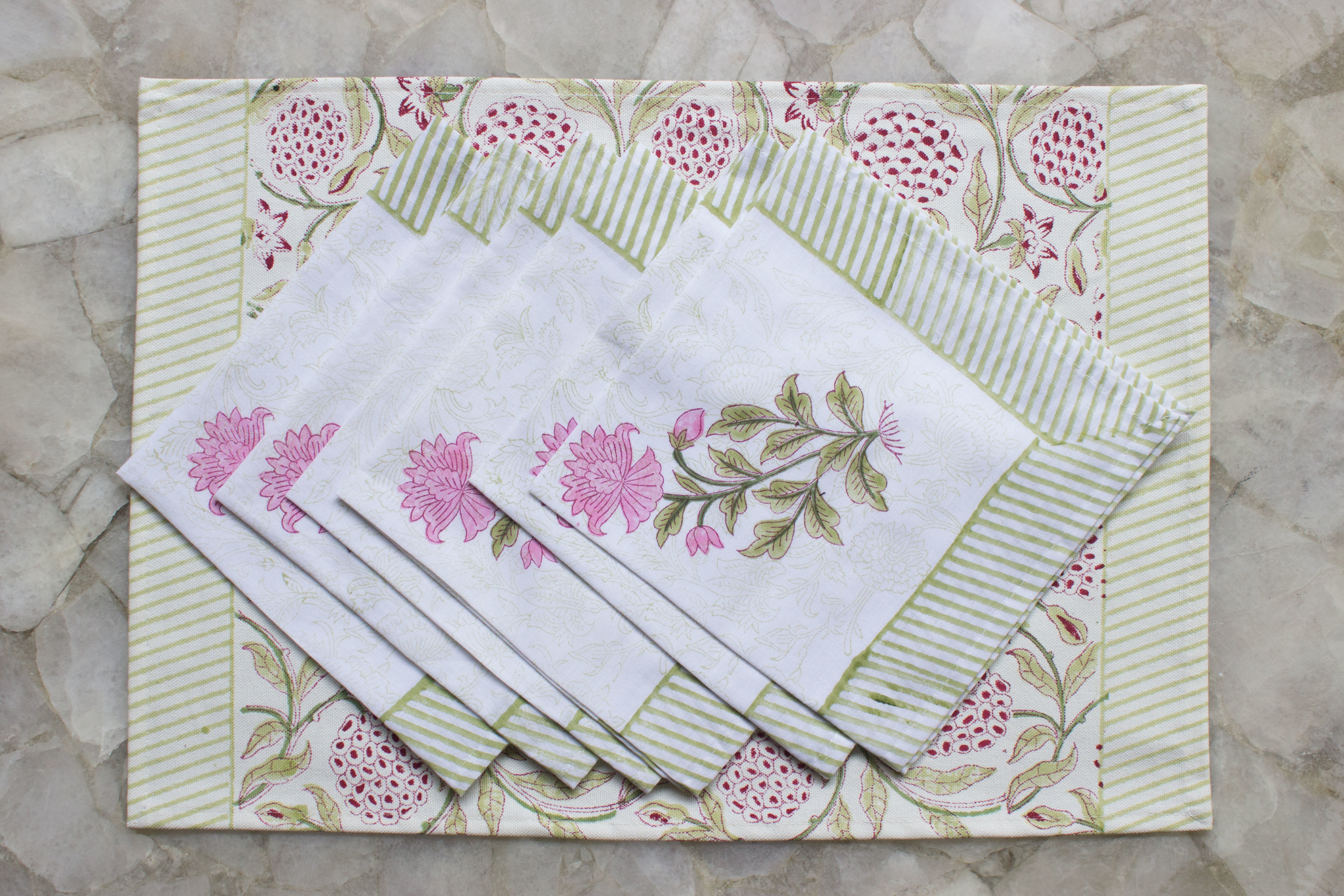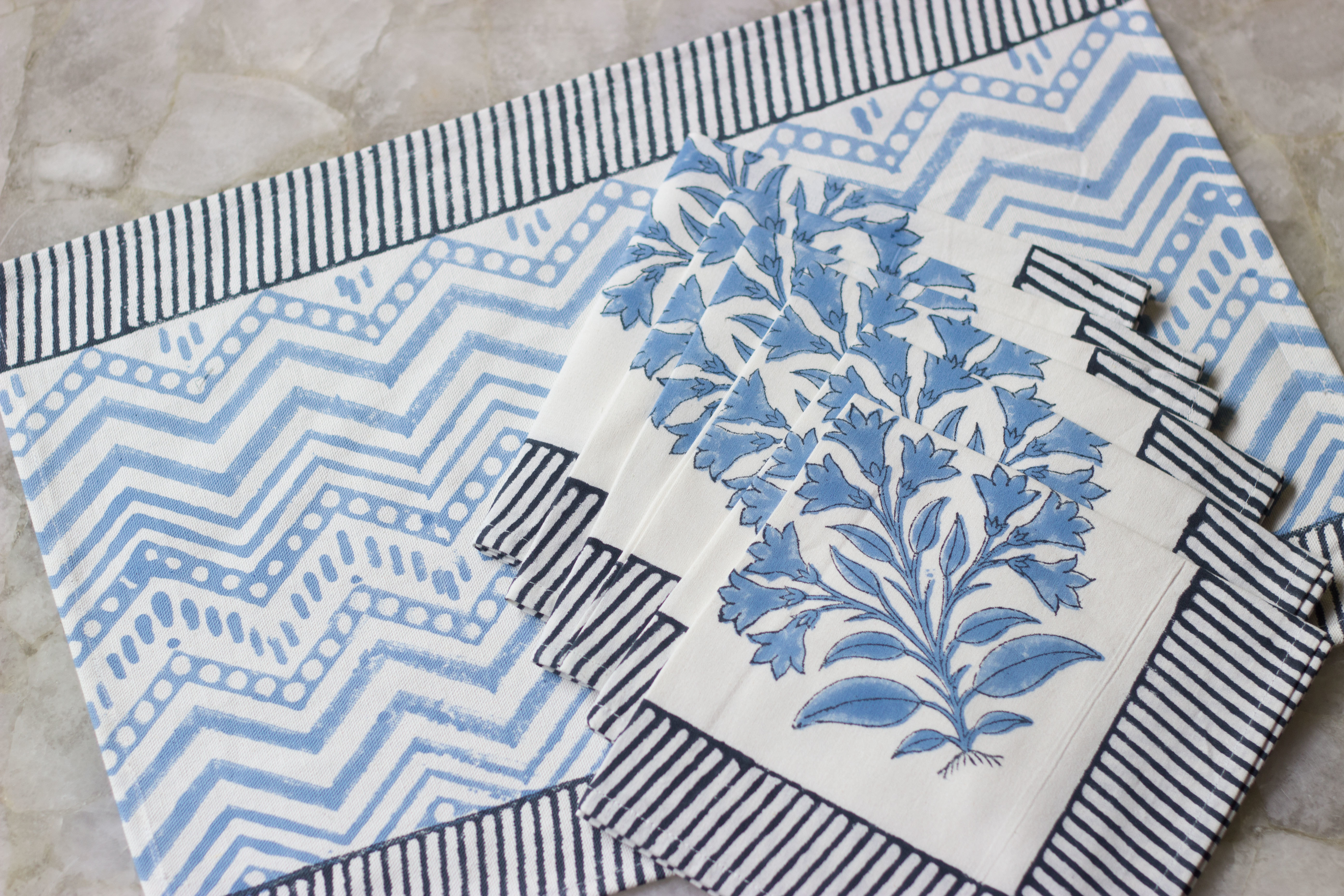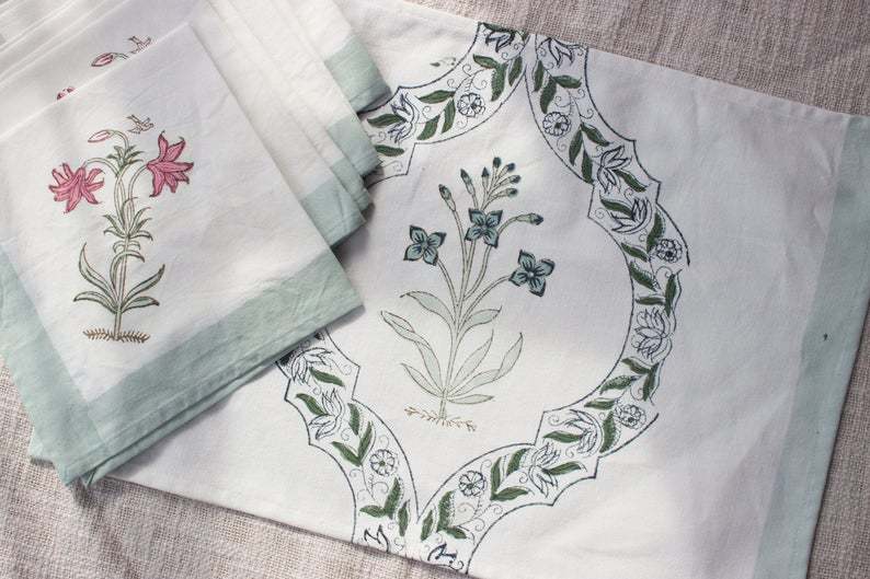 मल्टीपल ब्लॉक प्रिंट टेबल मैट और नैपकिन