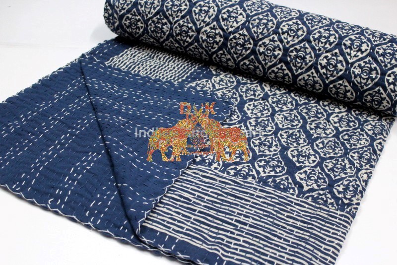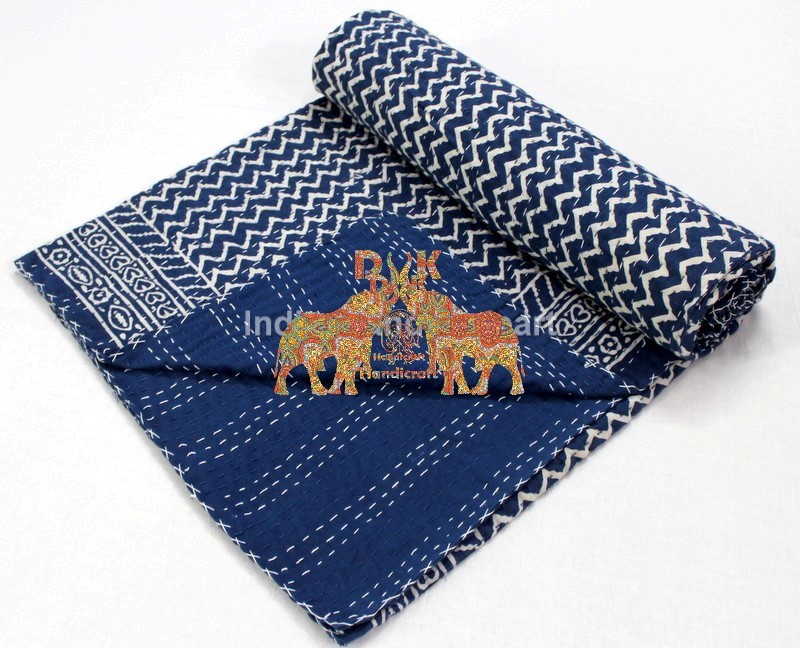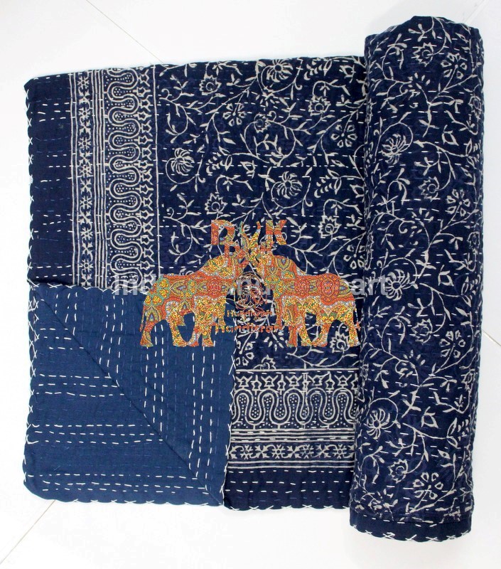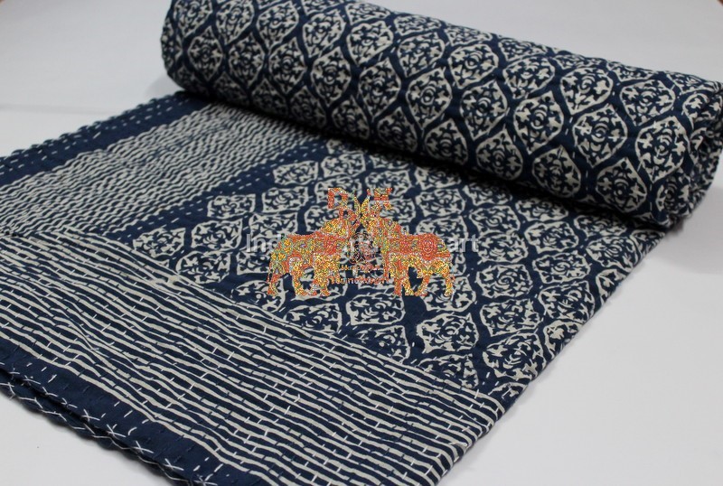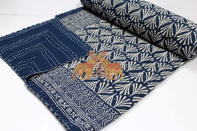 वॉशेबल ब्लॉक प्रिंटेड कांथा बेडकवर