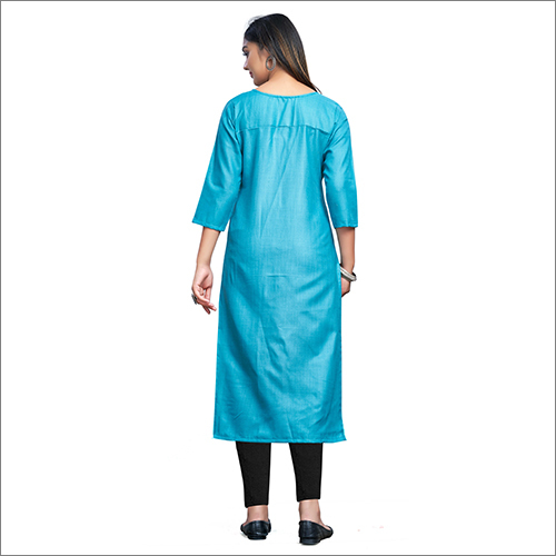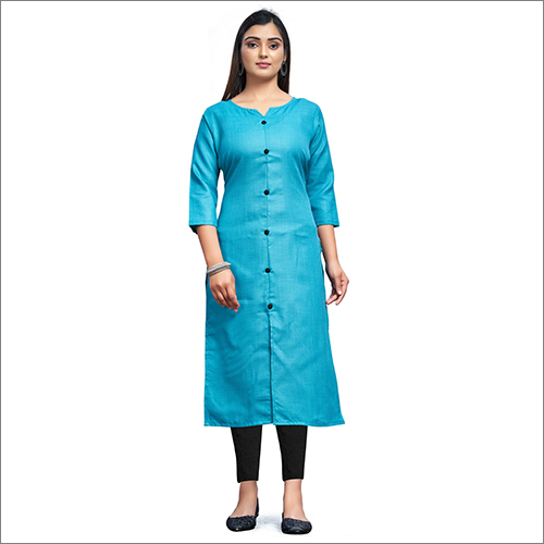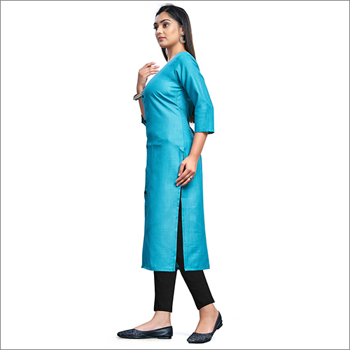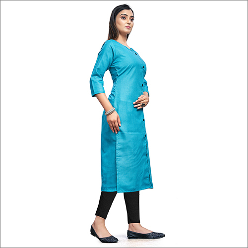 ब्लू ए लाइन सॉलिड स्ट्रेट कुर्ती