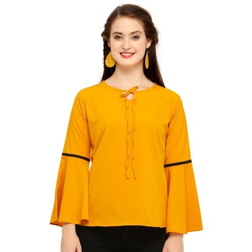 महिलाओं के लिए पीला आरामदायक और त्वचा के अनुकूल स्लीवलेस गोल नेक कैज़ुअल वियर फैंसी टॉप